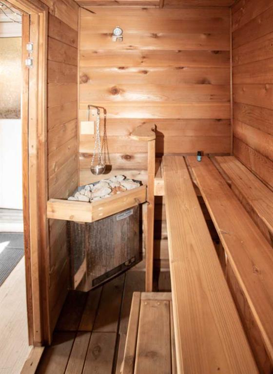 Out back a private yard with a deck and cedar pergola sets the stage for summer evenings, while the 4-person wet/dry sauna and sitting area offers a rare touch of relaxation.