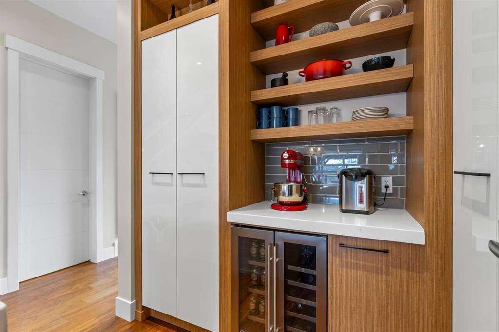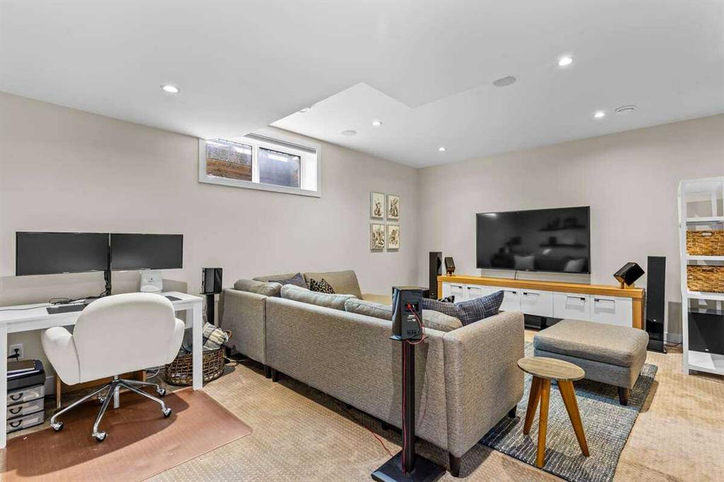 Warm Contemporary Energy Efficient Home in Rosscarrock – Spacious 2005 sq ft Half-Duplex with quick access downtown. Discover effortless urban living in this beautifully maintained 2015 semi-detached 2-story half-duplex, nestled in the desirable Rosscarrock neighbourhood of southwest Calgary. Located on a well-established street with similar residential developments, the home enjoys a cohesive and welcoming streetscape. With easy access to Bow Trail and less than a 10 minute drive to downtown—ideal for professionals, or growing family households seeking low-maintenance sophistication in a peaceful, amenity-rich community with parks, Westbrook Mall, CTrain, and top schools nearby. This open and light filled home offers 2007 sq ft above-grade plus a fully developed basement for 4 bedrooms and 3.5 bathrooms of flexible, high-end living across three levels: Main floor boasts soaring 10′ ceilings and a bright open-concept layout, complemented by a convenient 2-piece powder room. Abundant natural light floods the space through two skylights above the stairs enhanced by a striking 12mm glass staircase railing—illuminating the centre of the home. The chef-inspired kitchen is a highlight with an impressive 11′ long island, 6cm quartz countertops, and custom pull-out cabinetry for ultimate organization. It seamlessly opens to the living room while still offering a separate dining area, perfect for formal and private gatherings. Upper level features elegant vaulted ceilings, a luxurious primary suite with a walk-in closet and spa-like ensuite including a jet tub and electric in-floor heating, plus two good-sized secondary bedrooms, a full 4-piece bathroom, walk-in laundry with sink, wide hallway and reading area with built-in desk. Fully developed basement offers a generous fourth bedroom complete with a walk-in closet and 4-piece bathroom. Anchored by a large media/flex room, with a wet bar and built in cabinetry, the space is ideal for hosting guests, relaxed family nights, a home office or comfortable entertaining. Premium upgrades set this home apart: a 7.5kW solar panel system (installed March 2025) for significant energy savings, a brand-new variable-speed S9V2 Trane furnace (2025), full central air conditioning with variable-speed efficiency, rough-in hydronic basement heating ready for expansion, and luxurious electric in-floor heating in the ensuite bath tiled floor. Enjoy year-round comfort with low utility costs and modern smart-home potential. Outside, the deep 125′ lot provides generous backyard space—complete with a 10′ x 11′ pergola ideal for outdoor dining, relaxation, or entertaining under the Alberta sun, plus a double detached garage offering secure parking and ample storage. This turn-key gem combines timeless design with forward-thinking efficiency in one of Calgary’s most convenient and underrated southwest neighborhoods. Don’t miss your chance to own modern inner-city living in Rosscarrock.