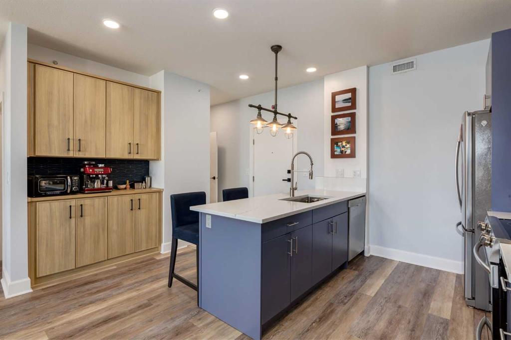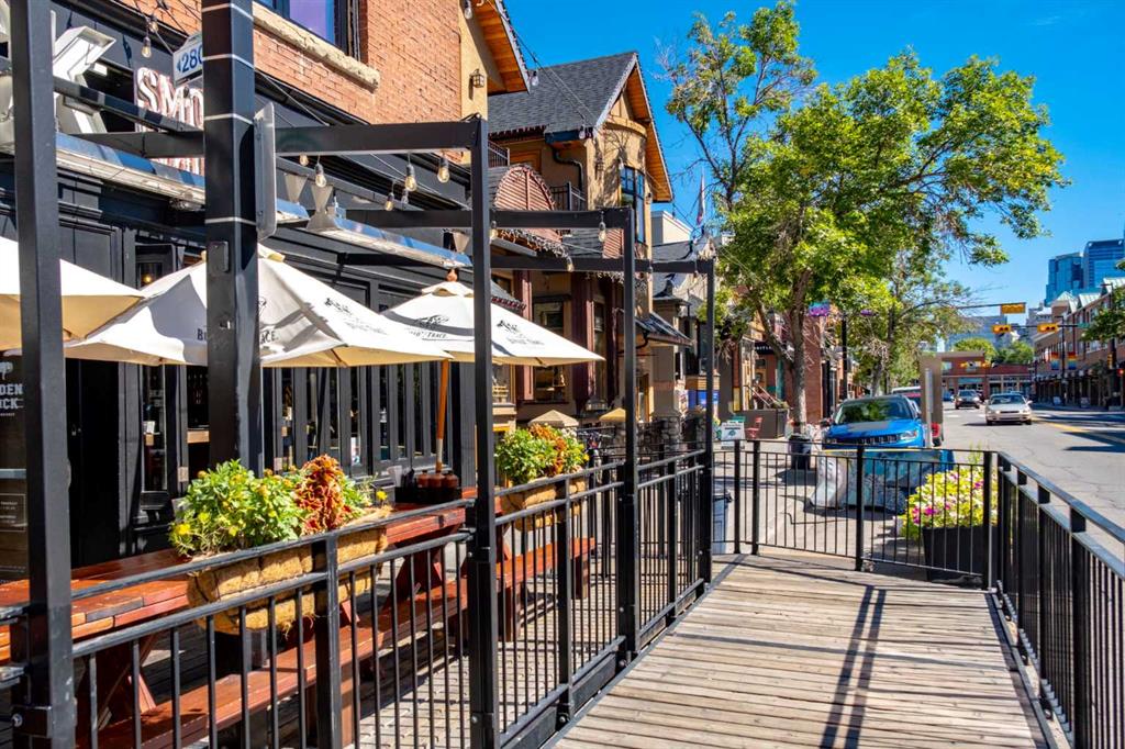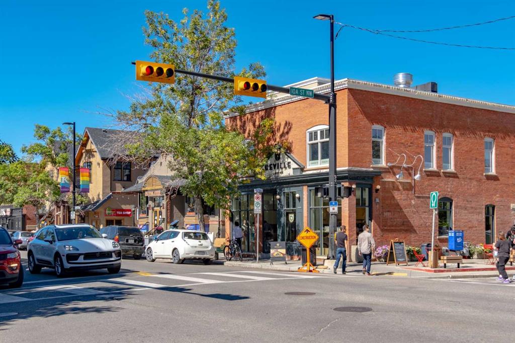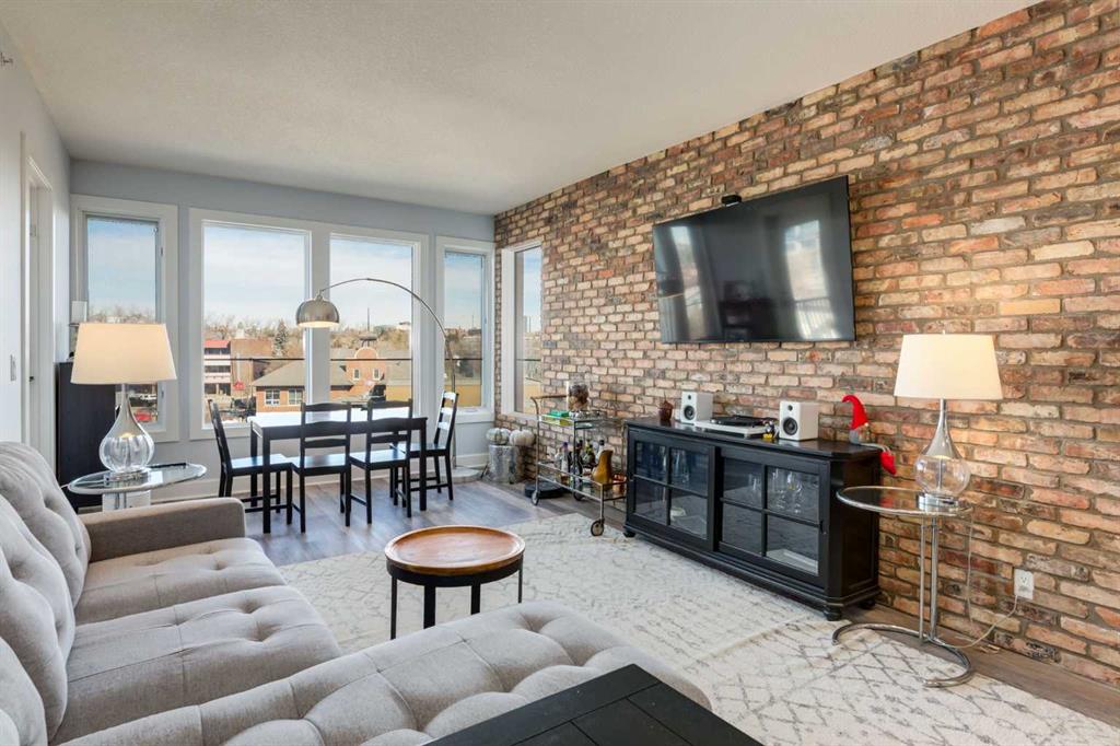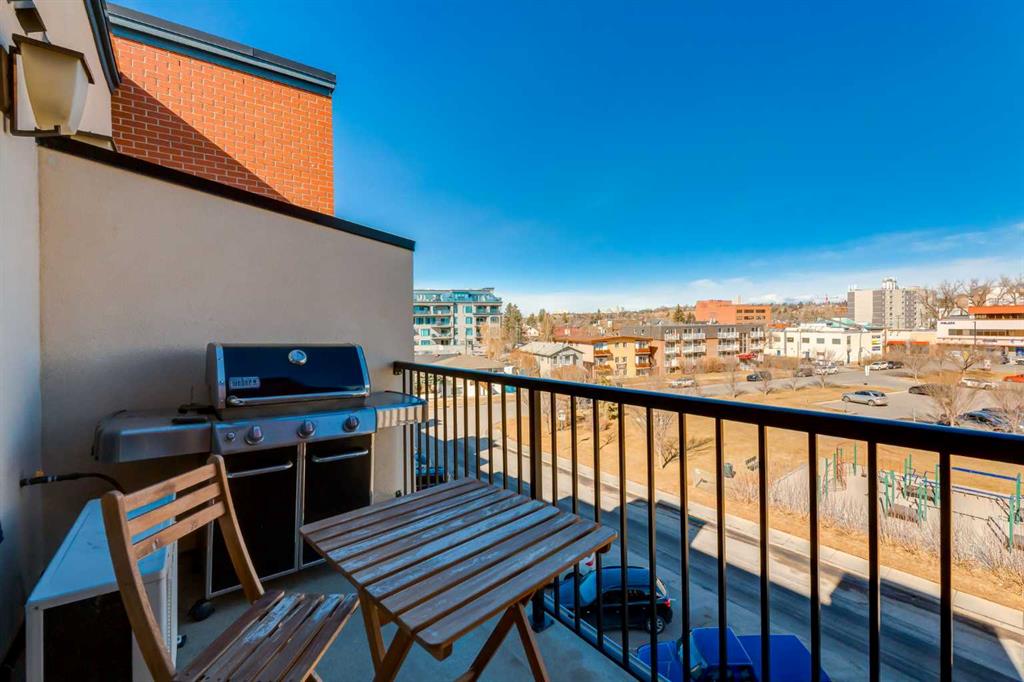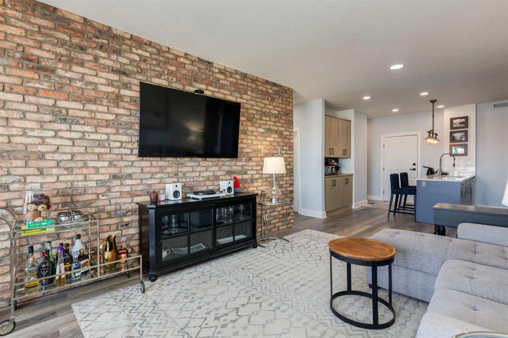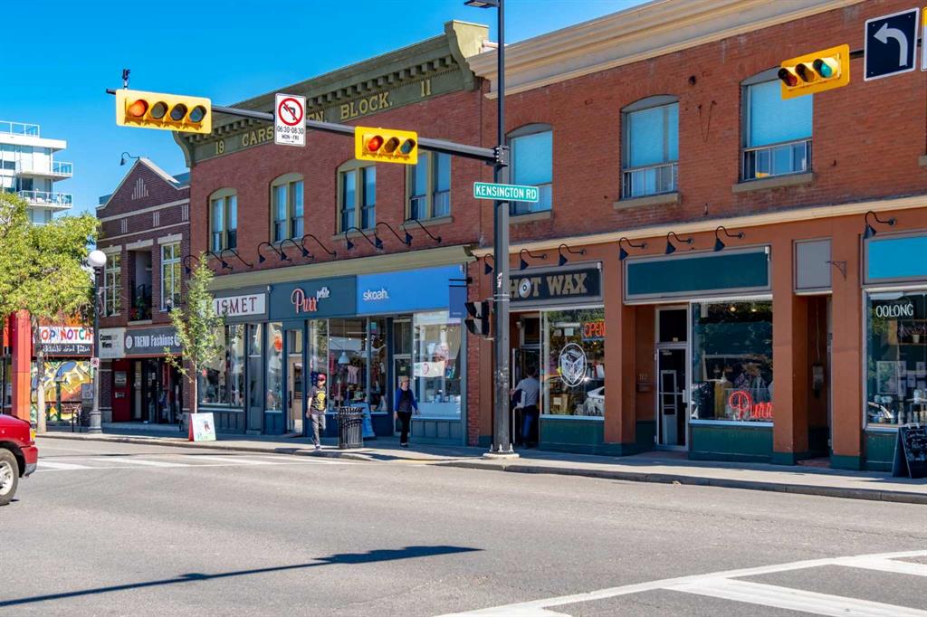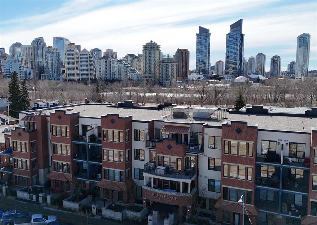 Welcome to Kensington living at its finest in The Providence Condo. This beautifully maintained building offers secure underground titled parking, storage, and a fully equipped fitness facility, all in one of Calgary’s most walkable and vibrant inner-city communities. Perched on the top floor, this fully renovated 2-bedroom, 2-bathroom residence showcases a bright contemporary design with refined industrial character. Thoughtfully curated finishes include Edison-style pendant lighting, a striking Chicago brick feature wall, wide plank luxury vinyl flooring, and a custom built-in wine display that adds both style and function. The open-concept kitchen makes a bold statement with rich navy cabinetry, stainless steel appliances, quartz countertops, and classic subway tile backsplash—perfectly designed for everyday living and entertaining alike. Both bedrooms and the private balcony capture impressive views toward Kensington and Southern Alberta Institute of Technology, while the spacious primary retreat features a walk-through closet leading to a beautifully updated ensuite complete with vessel sinks and elevated finishes. Just steps from trendy restaurants, cafés, groceries, transit, and the pathways along the Bow River, this home delivers the ultimate urban lifestyle in one of Calgary’s most sought-after neighbourhoods