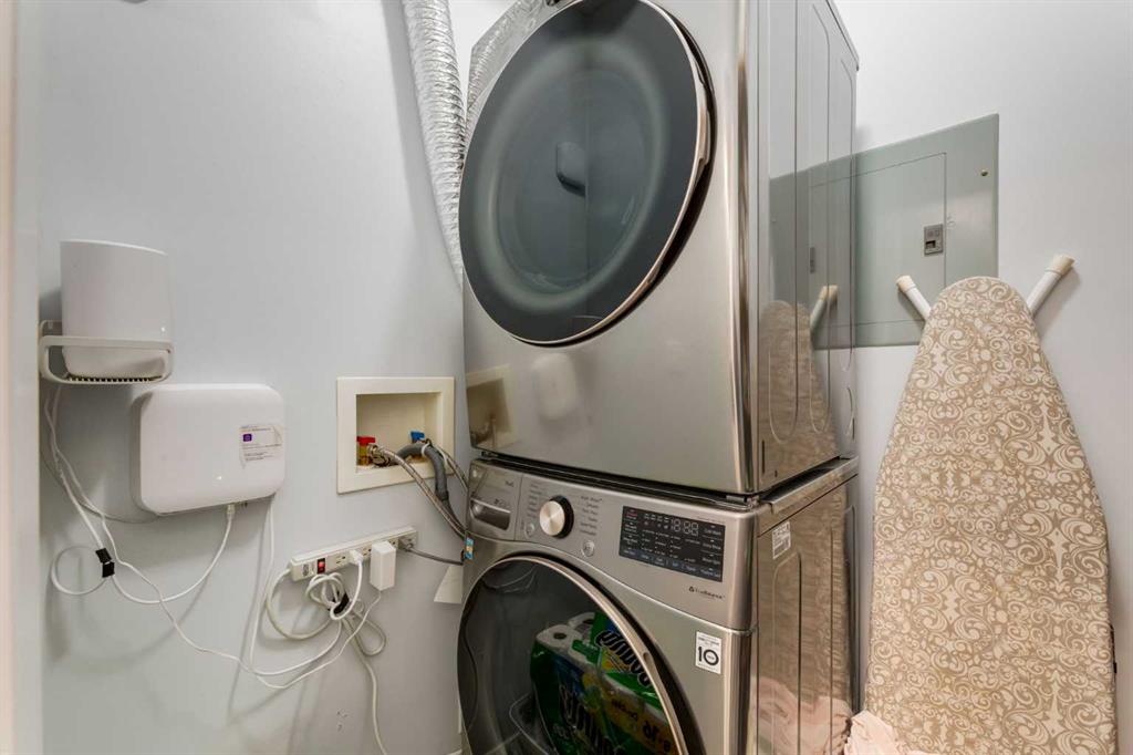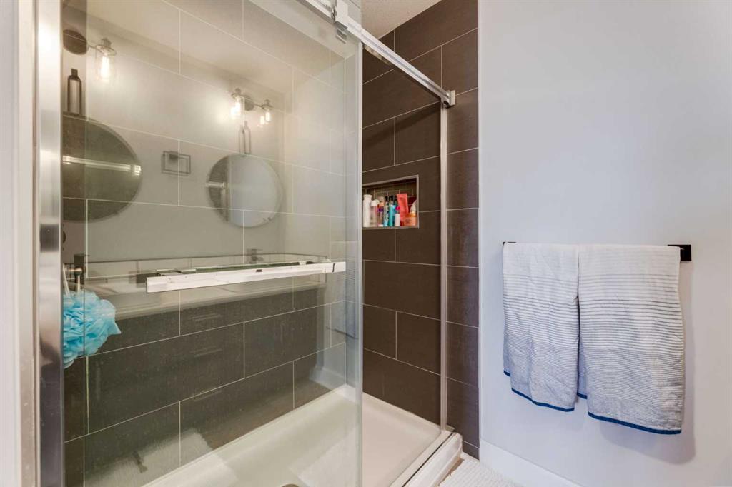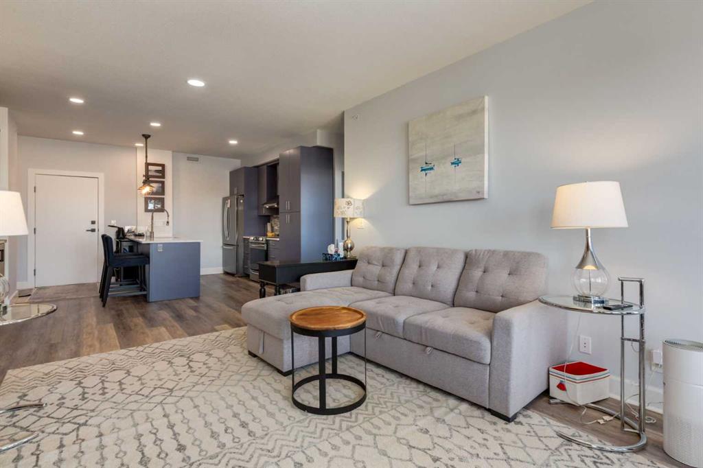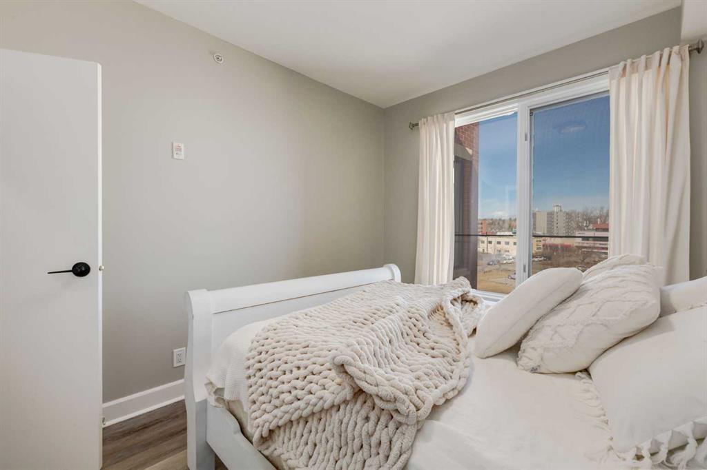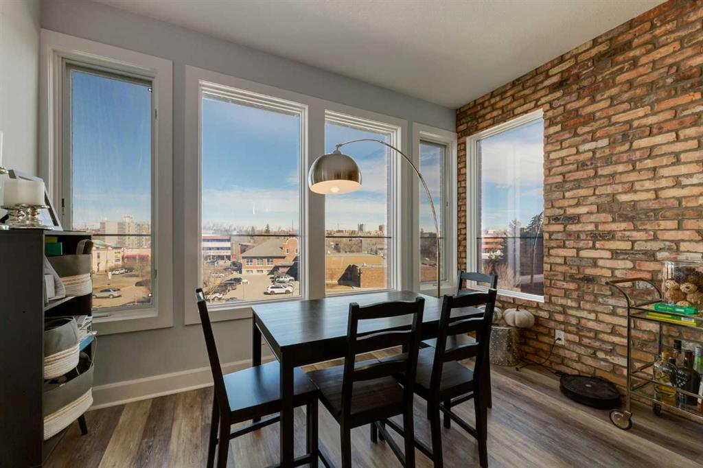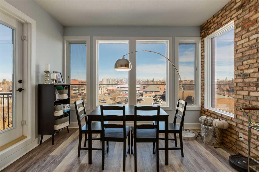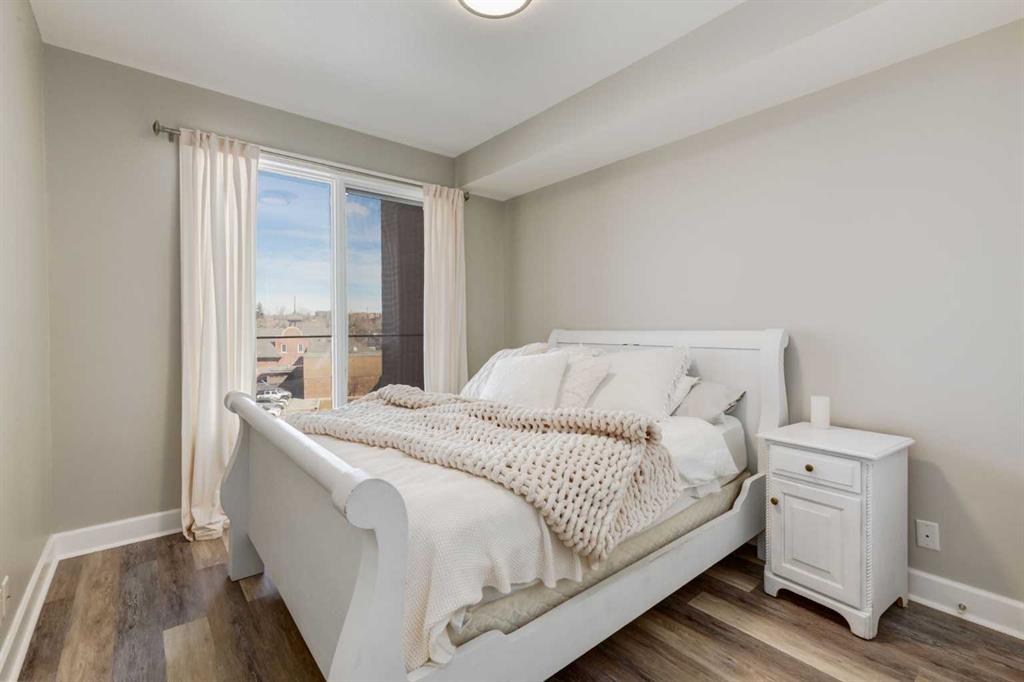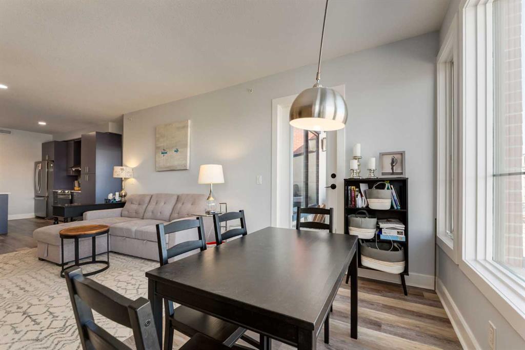 Welcome to Kensington living at its finest in The Providence Condo. This beautifully maintained building offers secure underground titled parking, storage, and a fully equipped fitness facility, all in one of Calgary’s most walkable and vibrant inner-city communities. Perched on the top floor, this fully renovated 2-bedroom, 2-bathroom residence showcases a bright contemporary design with refined industrial character. Thoughtfully curated finishes include Edison-style pendant lighting, a striking Chicago brick feature wall, wide plank luxury vinyl flooring, and a custom built-in wine display that adds both style and function. The open-concept kitchen makes a bold statement with rich navy cabinetry, stainless steel appliances, quartz countertops, and classic subway tile backsplash—perfectly designed for everyday living and entertaining alike. Both bedrooms and the private balcony capture impressive views toward Kensington and Southern Alberta Institute of Technology, while the spacious primary retreat features a walk-through closet leading to a beautifully updated ensuite complete with vessel sinks and elevated finishes. Just steps from trendy restaurants, cafés, groceries, transit, and the pathways along the Bow River, this home delivers the ultimate urban lifestyle in one of Calgary’s most sought-after neighbourhoods
