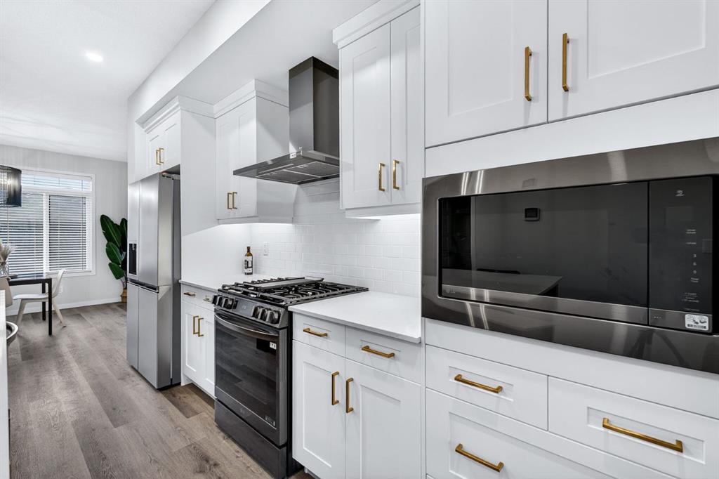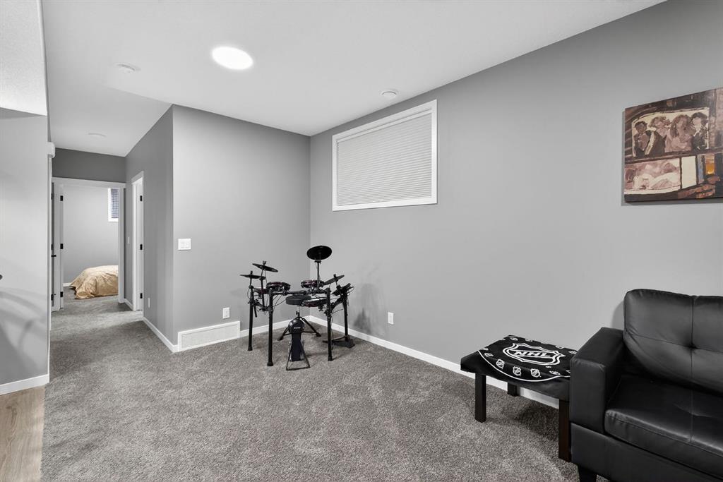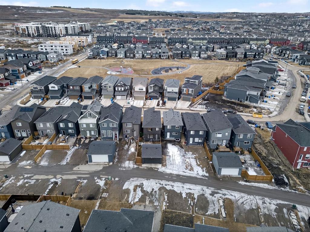 At the heart of the home is the custom kitchen and coffee nook, truly the nucleus of the space. Featuring an oversized island with seating, sleek white cabinetry with soft-close drawers, quartz countertops, stainless steel appliances, and statement lighting, this kitchen is as beautiful as it is practical. Built-in ceiling speakers elevate the experience whether you’re cooking, hosting, or enjoying a quiet morning coffee. The adjacent dining area offers a clean, modern setting for everyday meals or special gatherings. The upper level continues to impress with a bright open loft, ideal for a home office, reading nook, or flex space. Two generously sized bedrooms complete this level, including a serene primary retreat designed for rest and relaxation. The spa-inspired ensuite, upgraded with a premium spa package, showcases a deep soaker tub, glass-enclosed shower, elegant tilework, modern fixtures, and a sleek vanity—turning daily routines into a luxury experience. A walk-in closet with custom shelving completes the primary suite. The fully developed basement is where this home truly sets itself apart. Designed for entertaining and everyday enjoyment, this level features a spacious recreation area, a third bedroom, and an unforgettable custom $20,000 bar that steals the show. Finished with black tile, tinted mirrors, black quartz countertops, statement lighting, and matching custom finishes in the basement bathroom, this space delivers a true wow factor. Built-in ceiling speakers complete the experience, making it perfect for hosting friends, movie nights, or relaxing evenings at home. Location is the finishing touch. Ideally positioned on the edge of the city, this home offers quick access to both McLeod Trail and Deerfoot Trail, making commuting effortless in any direction including an easy drive west toward the mountains. A new commercial plaza with Tim Hortons sits just one street to the east, while greenways, walking paths, and a playground are located one street to the west, offering the perfect balance of convenience and lifestyle. This home is a rare blend of modern design, high-end upgrades, and thoughtful functionality perfect for buyers looking for a property that truly stands out.