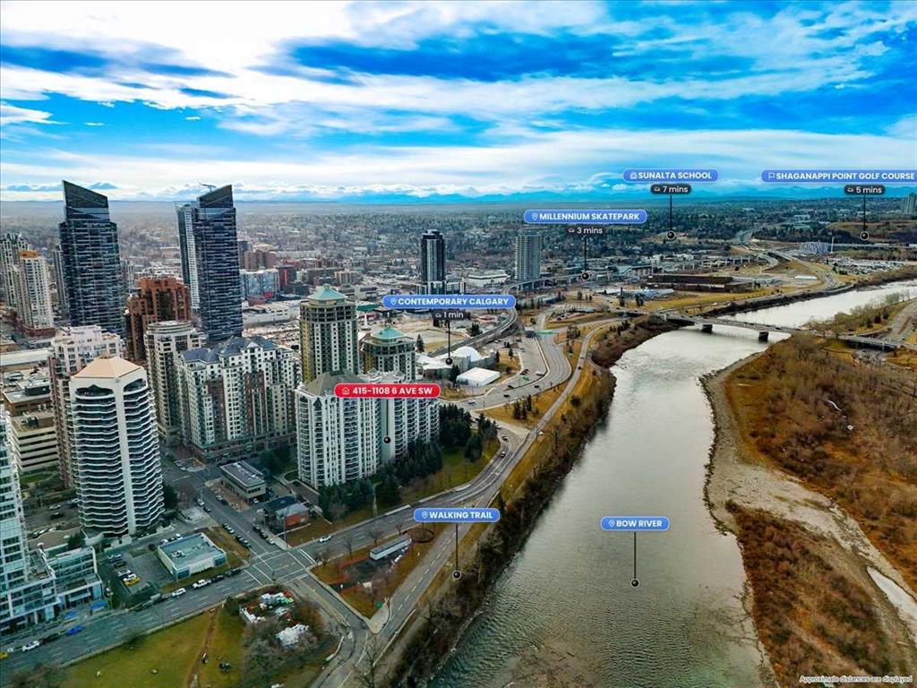 Welcome to The Marquis, a prestigious riverfront residence in Calgary’s vibrant West End. This beautifully maintained 2-bedroom, 2-bathroom condo offers a rare combination of serenity and city convenience, all in a quiet setting just steps from Calgary’s best urban amenities—complete with stunning Bow River views.