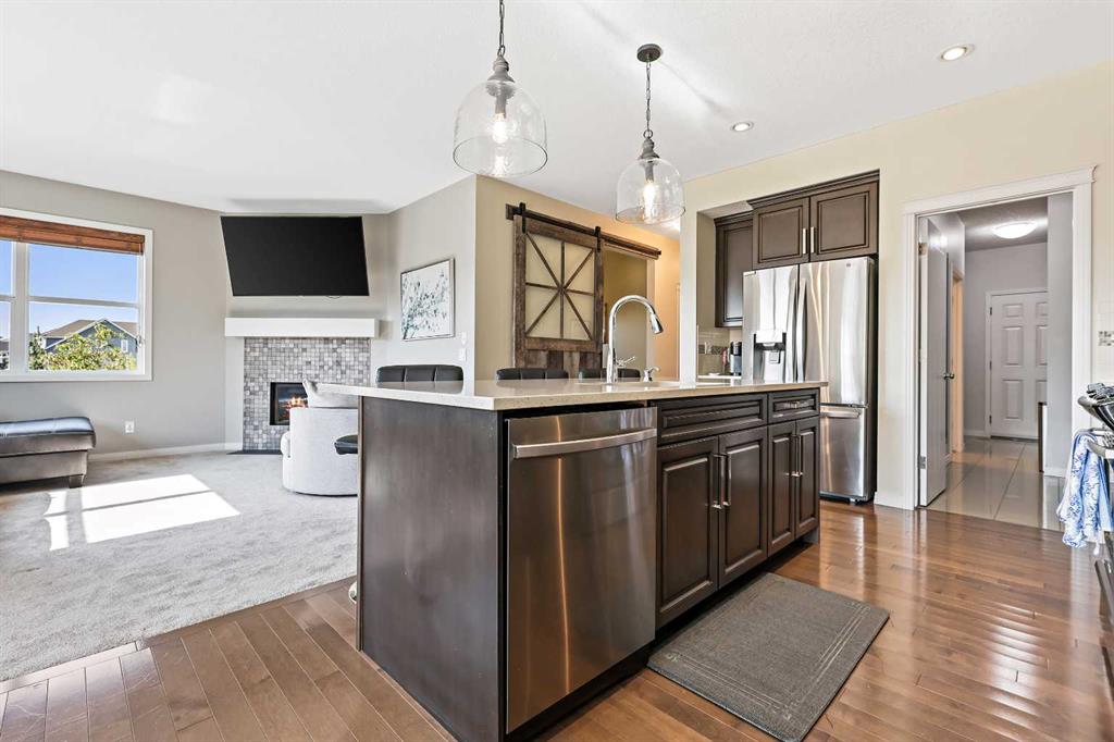 Searching for a 3-bedroom detached home in Auburn Bay with pond views and a sun-filled backyard? 415 Auburn Bay Avenue SE offers over 2,200 sq. ft. of living space, desirable south and west backyard exposure for all-day light, and direct access to pathways, schools, and the lake. You’ll immediately appreciate the home’s unique positioning, with no neighbours on the west side—providing added privacy, extra natural light and direct views of the adjacent green space. From the front steps, enjoy watching Auburn Bay’s annual Christmas parade pass by and create lasting family traditions. Inside, the bright and thoughtfully designed main floor centres around a spacious kitchen featuring stainless steel appliances and quartz countertops. The layout flows seamlessly into the dining and living areas, ideal for everyday family living and entertaining. At the rear of the home, large windows showcase the backyard, where the south and west exposure fills the space with sunlight throughout the day. Step onto the deck to take in peaceful pond views, access the walking path directly, and enjoy watching the Community’s seasonal fireworks reflect over the water. Upstairs, the primary bedroom offers stunning mountain views and serves as a relaxing retreat, complete with a five-piece ensuite. New carpet throughout and new tile flooring in the bathrooms adds a stylish and modern touch, while two additional bedrooms provide comfortable space for children, guests, or a home office. With over 2,200 sq. ft. of living space and walking distance to top-rated schools, shopping, restaurants, and Auburn Bay Lake, this three-bedroom detached home delivers the light, lifestyle, and location families seek in one of Calgary’s most desirable lake communities. Book your private showing today!