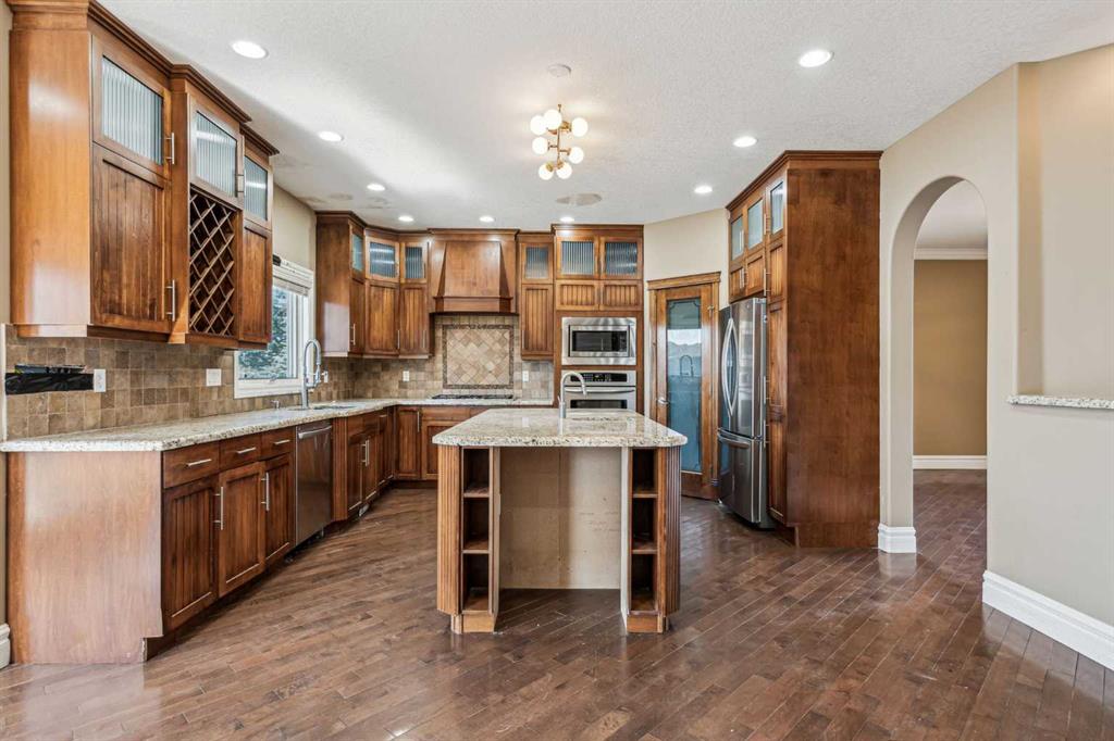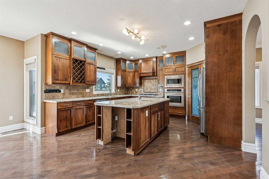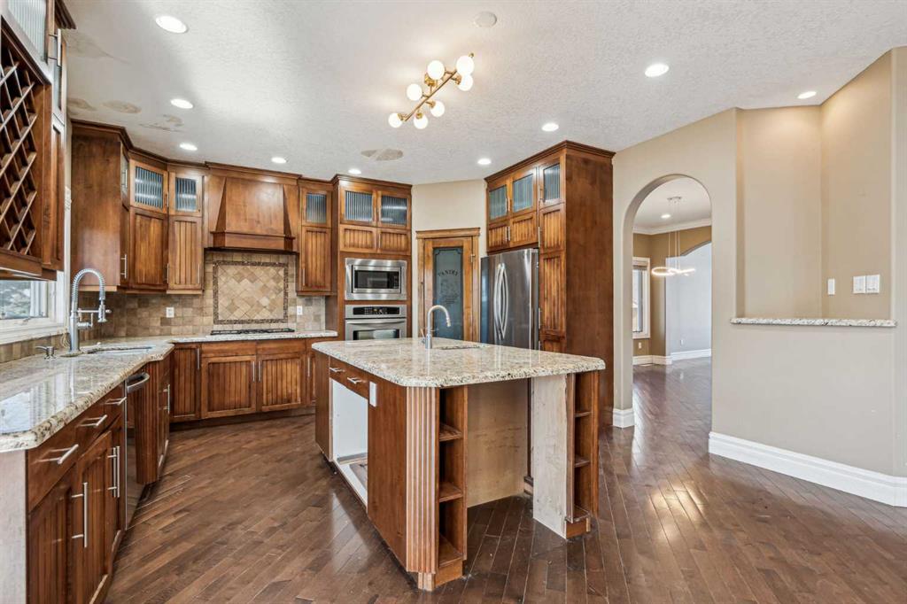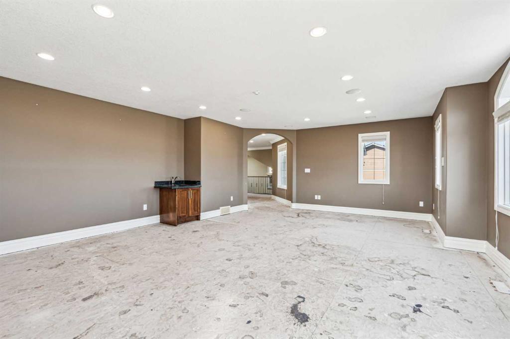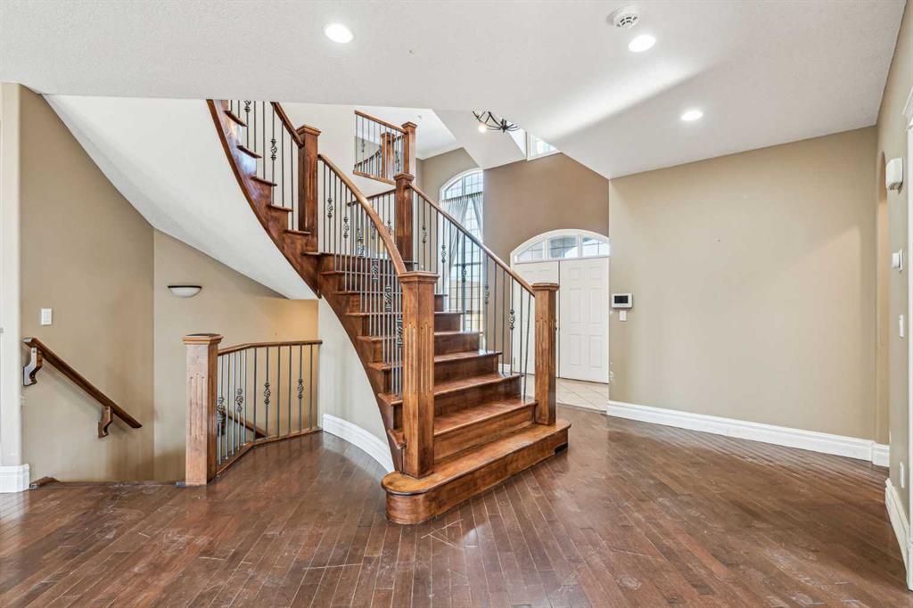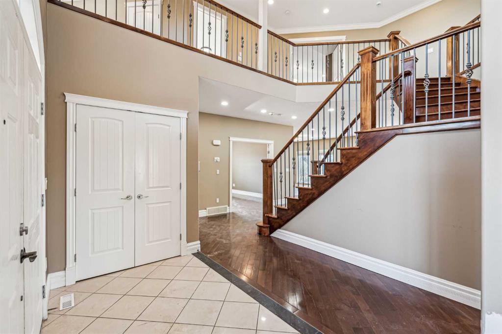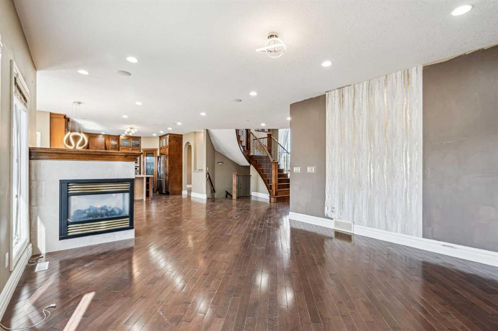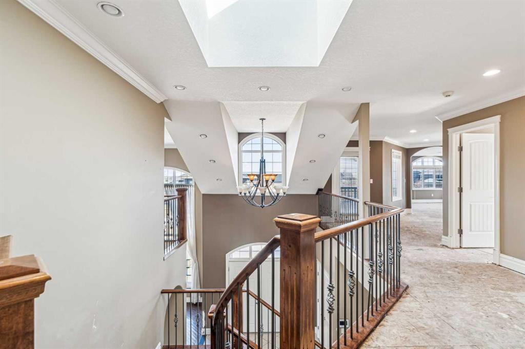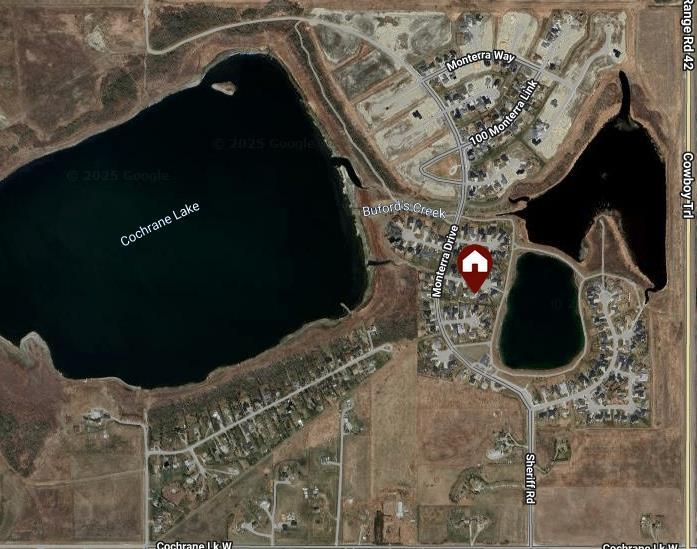 Welcome to “Monterra on Cochrane Lakes”! Discover the opportunity to own in the exclusive and peaceful community of Monterra, just minutes from Cochrane and a short drive to Calgary. Surrounded by stunning mountain views, Cochrane Lake, ponds, parks, and green space, this property offers a quiet retreat from the city. Ideally located on a tranquil cul-de-sac, just two doors from pathway access and serene ponds—and only steps from Cochrane Lake—this spacious 0.38-acre south-facing lot offers beautiful natural surroundings. The home’s exterior features stucco and stone, with a large aggregate driveway leading to a triple-car garage, creating excellent curb appeal. This large estate property presents endless potential. With 3,837 sq. ft. above grade and a 1,621 sq. ft. unfinished walkout basement, this home is ready for your vision and personal touch to restore it to its full potential. The main floor offers a functional layout with a kitchen open to the breakfast nook and living room, a formal dining area open to a family room, a home office, and a full bathroom. Upstairs, you’ll find 3 bedrooms, 3 bathrooms, and a spacious bonus room. The generously sized primary suite includes a walk-in closet, a 5-piece ensuite, and a private balcony with lake and mountain views. Enjoy the natural beauty and recreational lifestyle that Monterra offers, with scenic ponds, winding trails, and year-round outdoor activities. This is your chance to invest in and unlock the potential of a spacious estate home in a desirable community. Please note this is a Judicial Sale—property is being sold as is.