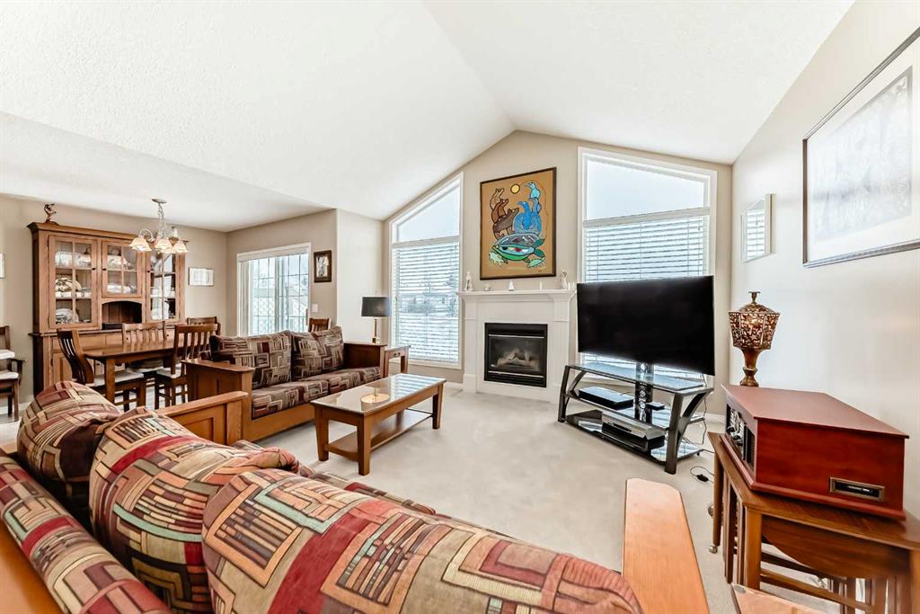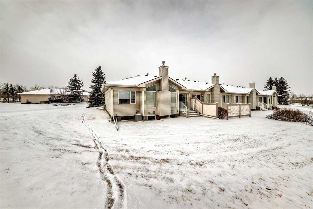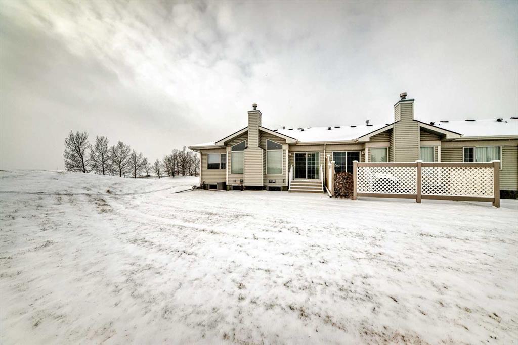 OPEN HOUSE February 1st 2-4, Welcome to Prince of Peace Village an Adult 55+ community on the edge of the City of Calgary. Easy access to the #1 highway and close to Calgary heading west or Chestermere heading east. Prince of Peace Village is a vibrant community with walking paths, Community Gatherings at the Centre and a natural setting. This villa comes with 2 bedrooms up, a 4 piece bathroom with dual access either from the Primary Bedroom or hall way. The Vaulted ceilings make the living room feel very spacious and open. A fireplace adds too the warmth of the area and the windows framing the fireplace bring in so much natural light. In the summer turn on the central air for comfort. throughout the home. The Kitchen is bright with a central island, and lots of counter & cupboard space. There is even a built in desk area. Dining Room is large enough for seating for 6. Sliding patio doors take you to a lovely patio with nature right at your door! The 2nd bedroom of this home is used as an office and could easily be the guest room or t.v. area. Laundry is also conveniently located on the main floor. This home is at the end of the cul de sac and there are no immediate neighbours to the west and is almost surrounded by greenspace. The condo fee includes snow removal, in winter and lawn care in the summer. Prince of Peace Village, a Beautiful place to call Home!