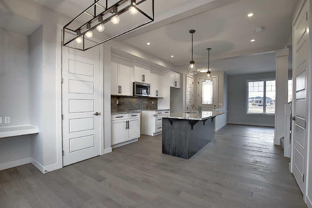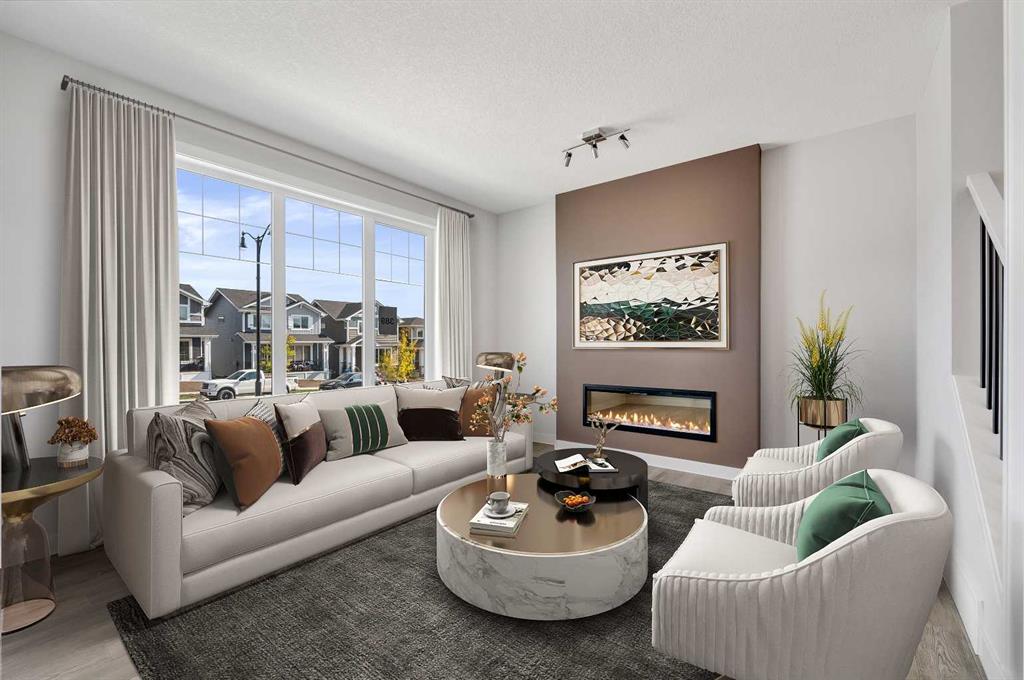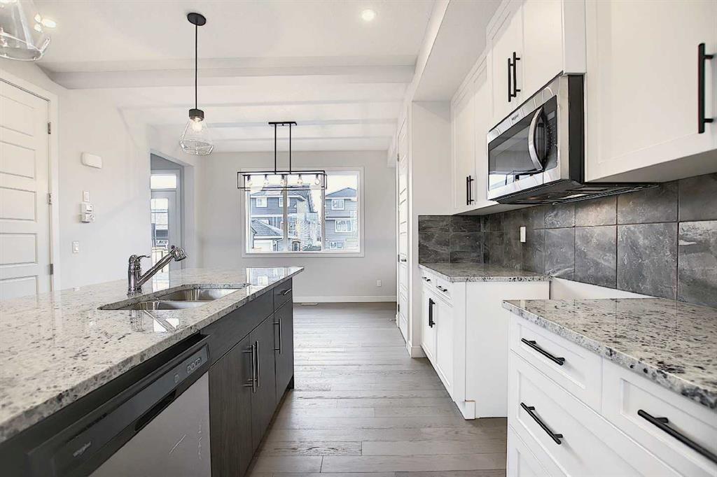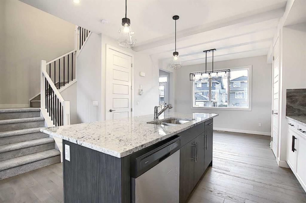 NEW PRICE! IMMEDIATE POSSESSION. BRAND NEW HOME by Douglas Homes, Master Builder in central Greystone, short walking distance to parks, the Bow River, major shopping & interconnected pathway system. Featuring the Victoria with separate side entry on an R-MX zoned home site for POTENTIAL future lower level suite. NOTE: a secondary suite would be subject to approval and permitting by the city/municipality. This gorgeous 3 bedroom, 2 & 1/2 half bath home offers over 1400 sq ft of living space. This home is located on River Avenue which provides immediate access to the interconnective pathway system, perfect for those looking for a outdoor lifestyle. Loads of Designer & upgraded features in this beautiful, open floor plan. The main floor greets you with 8′ front door, soaring 9′ ceilings, oversized windows, built-in niches & fireplace. Gleaming Hardwood floors flow through the kitchen, hall & nook adding a feeling of warmth & style. The Kitchen is completed with Quartz Countertops, two tone Kitchen Cabinets, 42″ uppers with decorative enclosed bulkhead, plenty of drawers including Pots & Pan drawers, soft close doors & drawers, convenient tech space/desk & new stainless steel Kitchen appliance package. Upstairs you’ll find a generous Primary Bedroom with Ensuite – Quartz Counters with separate, twin sink vanities, 5′ shower with Designer tiled walls, private water closet all completed with ceramic tile flooring & large walk-in closet. The 2nd floor is completed by two good size additional bedrooms, main bath tub/shower combination with tiled walls, Quartz countertop, undermounted sink & ceramic tile flooring. You will love the convenience of 2nd Floor Laundry completed with ceramic floor tile. This is a very popular plan, great for young families, investors or the down sizers. Spacious, Beautiful and Elegant! The perfect place for your perfect home. Call today! Interior photos are from prior build & are reflective of fit, finish & included features. Note: Interior photos are for illustration purposes only. Actual interior colors/finishes, & upgrades may be different than shown & the Seller is under no obligation to provide them as such.
