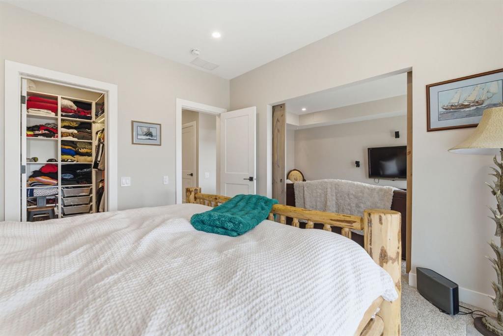 The dining area features built-in bench seating with storage—perfect for gathering with family and friends. Step outside onto the expansive full-width deck, complete wit stairs leading to the yard, creating a seamless indoor-outdoor lifestyle. Upstairs, you’ll find two versatile spaces—one is a perfect bedroom with a large walk-in closet and another ideal as a 2nd bedroom or home office—along with a 3-piece bath. A private balcony off the upper level offers a quiet place to take in the panoramic lake and mountain views. The walkout lower level is dedicated to the primary retreat, designed for relaxation with a spacious bedroom, walk-in closet, and a luxurious spa inspired 5-piece ensuite featuring in-floor heating and a glass steam shower. Barn doors allow you to create separation or maintain an open feel with a large entertainment room. Patio doors lead directly outside, further connecting you to the natural surroundings. Laundry and additional storage complete this level. Above the double heated garage, is a bunk house with a 3-piece bath offering incredible flexibility—perfect for teens, guests, extended family, or a private workspace. This home is also equipped for modern living with smart home features, integrated network wiring, and an energy-efficient Mitsubishi Zuba heat pump providing both heating and cooling year-round. Just steps from the clubhouse, and lake access, making its location truly one of the best in the community. CottageClub is a unique community offering an unmatched lifestyle—complete with a private beach, lake access, sport courts, and walking paths. Also a fitness facility, indoor pool, hot tub, sport court, library, and and a fully equipped kitchen. Whether you’re looking for a weekend getaway or a full-time home, this is your opportunity to experience lake living at its finest.