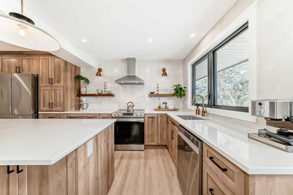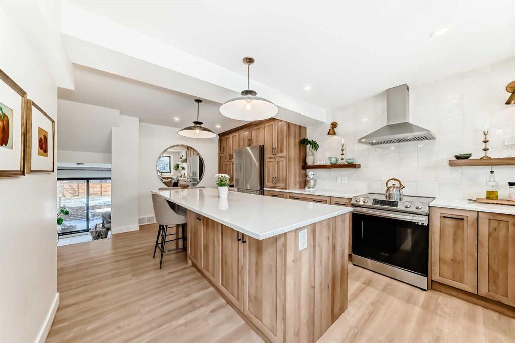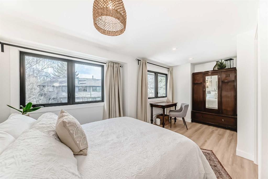 Hello, Gorgeous! Welcome to 42 Point Drive NW in the sought-after river community of Point McKay. This beautifully renovated townhome offers 1,368 sq ft of above-grade living space with 2 bedrooms and 3 bathrooms in a thoughtfully designed multi-level layout. Backing directly onto peaceful greenspace with a west-facing outdoor area, this home offers rare privacy while being just steps from the Bow River pathway system and minutes to downtown Calgary. Inside, extensive upgrades create a modern and comfortable interior, including a custom chef’s kitchen with designer drawer layout, newer appliances with induction stove, luxury vinyl flooring throughout, and stylish designer lighting. The bright living area features a tiled gas fireplace and large triple-glazed windows that bring in abundant natural light, while a sliding patio door provides seamless access to the outdoor space. Upstairs, two spacious bedrooms include a primary retreat with walk-in closet and a beautifully appointed ensuite featuring heated floors and high-end fixtures. Mechanical and infrastructure updates include all new plumbing with copper removed, triple-glazed windows and patio door, updated furnace, hot water on demand, electrical upgrades, smart thermostat, and hardwired smoke detectors. The unfinished basement provides additional storage and future potential. Additional features include an attached garage, custom built-ins, wine storage, and landscaped front garden with perennials. Located in one of Calgary’s most unique inner-city communities, this home offers easy access to river pathways, parks, Foothills Hospital, the University of Calgary, and downtown, making it an ideal opportunity for professionals, downsizers, or anyone seeking an active lifestyle close to nature and the city.