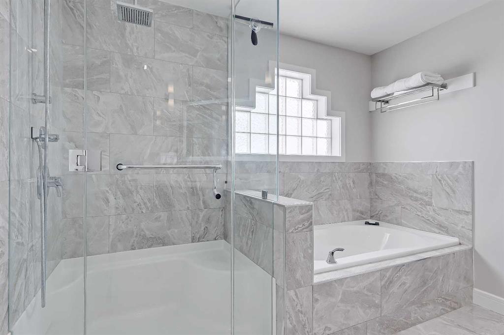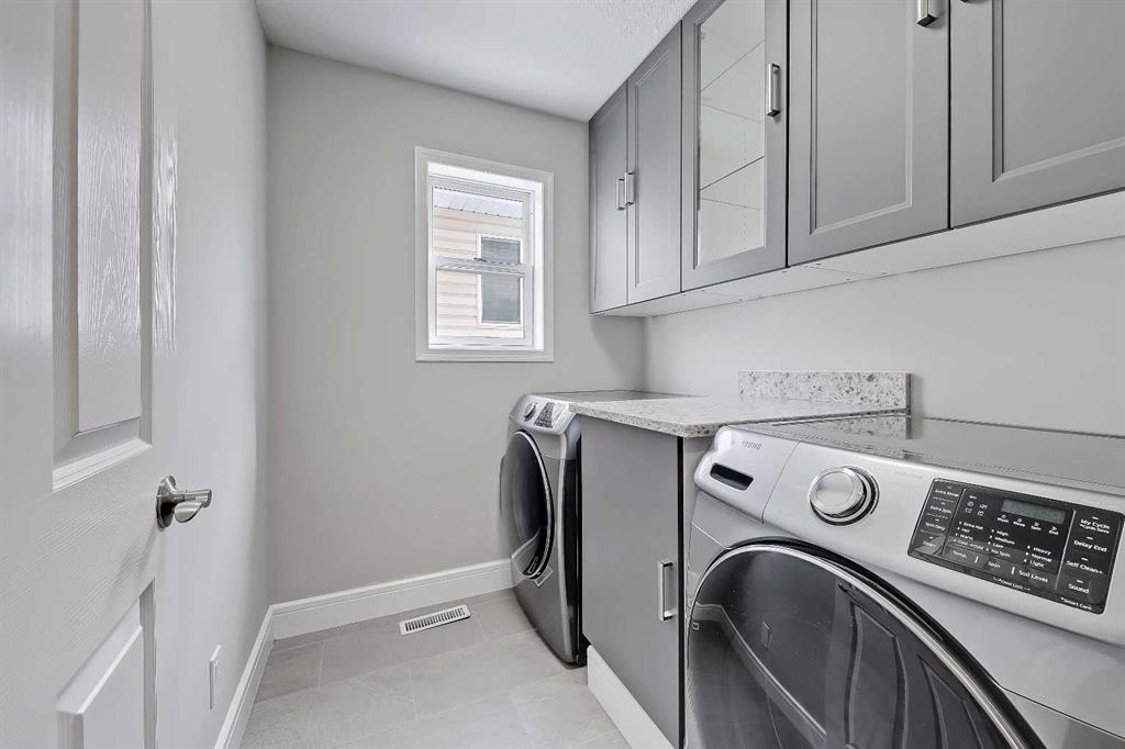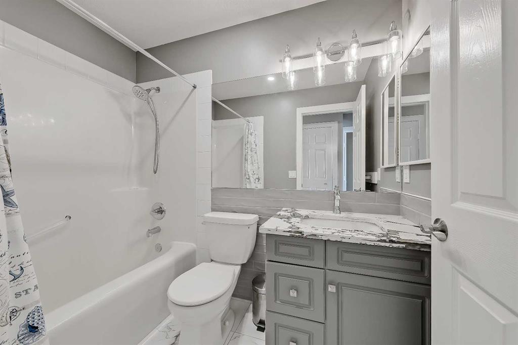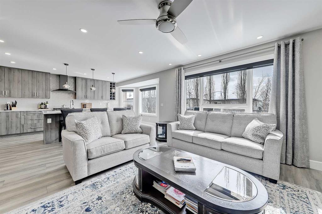 Upstairs, the layout is ideal for families with a large bonus room accented by a unique loft-style window feature, a serene primary retreat with bay windows, walk-in closet and a beautifully renovated 4-piece ensuite with a large vanity, oversized shower and soaker tub, plus two additional generously sized bedrooms and another renovated 4-piece bathroom. The bright walkout basement features an illegal 1-bedroom suite with a brand-new kitchen with an island, dinette area, full-height cabinetry and stainless-steel appliances, a spacious living room, large bedroom with included wardrobe, renovated 4-piece bathroom, separate laundry and a storage room.