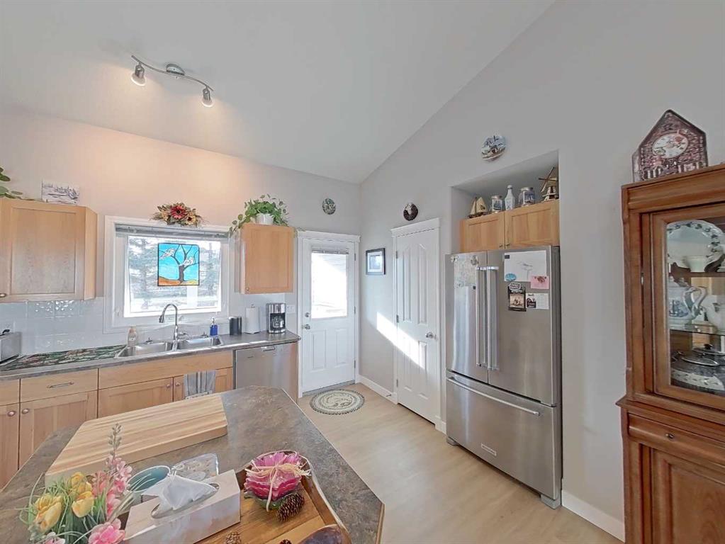 *Original Owner* *10/10 Curb Appeal!! Enter through the Archway, past the Apple trees, to the Covered Front Deck and into this Fully Finished Bi-Level with 3 Full bathrooms and 4 Bedrooms(total). This very Bright & Open plan welcomes you with lofty Vaulted Ceilings. The main floor has 2 bedrooms, 2 full bathrooms and a main-floor laundry. Upon entering you will discover all NEW VINYL PLANK FLOORING & BASEBOARDS(December 2025)on the main level, a good-sized living and dining room combo plus a spacious kitchen with Hickory cabinetry, a large island and a Walk-in Pantry!