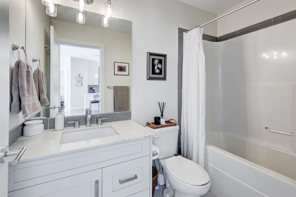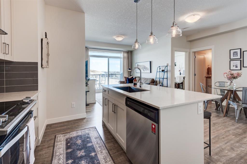 Located in the vibrant, walkable community of Walden, this beautiful top-floor 2-bedroom 763 sq.ft. apartment offers an exceptional combination of privacy, natural light, and stunning views! Enjoy unobstructed views of the park, pond, and pathways, which create a peaceful backdrop that can be appreciated from the comfort of home. As a top-floor residence with a concrete subfloor and only one shared wall, this home provides a remarkably quiet living experience rarely found in apartment living. Inside, the bright and open layout is filled with natural light from large windows throughout the living area and both bedrooms. The living area features a large sliding window with transom, perfectly framing the views while allowing sunlight to pour in throughout the day, and opens onto a spacious balcony ideal for relaxing or entertaining while enjoying the scenery. Rich, warm luxury vinyl plank flooring is complemented by painted shaker cabinetry, upgraded lighting, and approximately $15,000 in thoughtful upgrades that elevate both style and function. The kitchen is designed with everyday convenience in mind, featuring quartz countertops, a large island, built-in microwave, under-mount sink, a corner pantry, and a large French-door refrigerator. This well-designed home offers two bedrooms, including a bright primary retreat with upgraded closet organizers and a walkthrough closet leading to a private 3-piece ensuite with a wide shower. A full 4-piece main bathroom serves the second bedroom and guests. Additional convenience includes a titled underground parking stall, providing secure parking and easy year-round access. Residents enjoy a highly walkable neighbourhood with a variety of shopping and dining options just steps away, while Fish Creek Provincial Park, the Bow River, and nearby golf are just a short distance for your outdoor recreation needs. With quick access to Macleod Trail and Stoney Trail, commuting around the city is simple and efficient. This is a rare opportunity to enjoy top-floor living with stunning views, exceptional privacy, a welcoming balcony, and stylish, move-in ready finishes in this bright, quiet home.