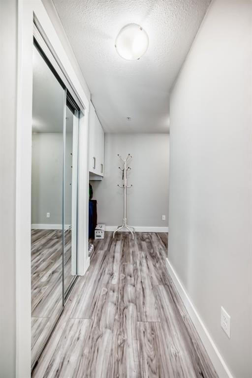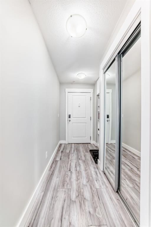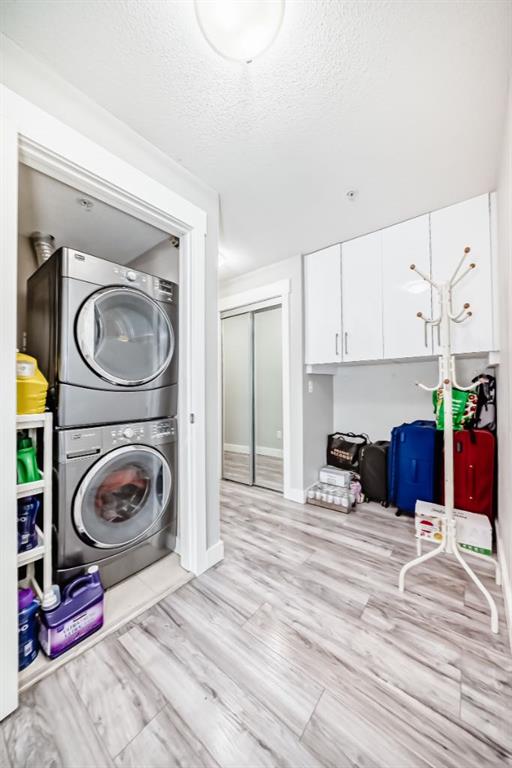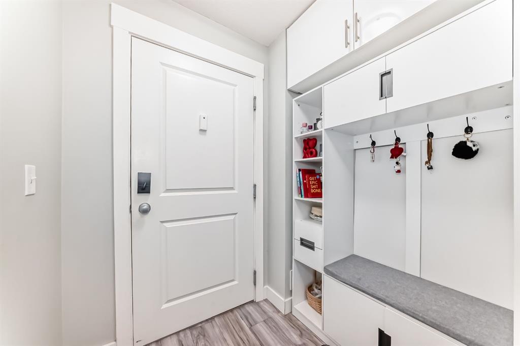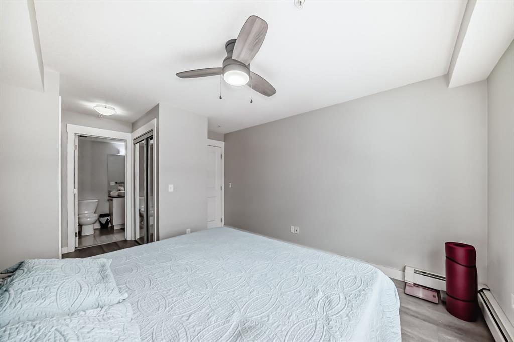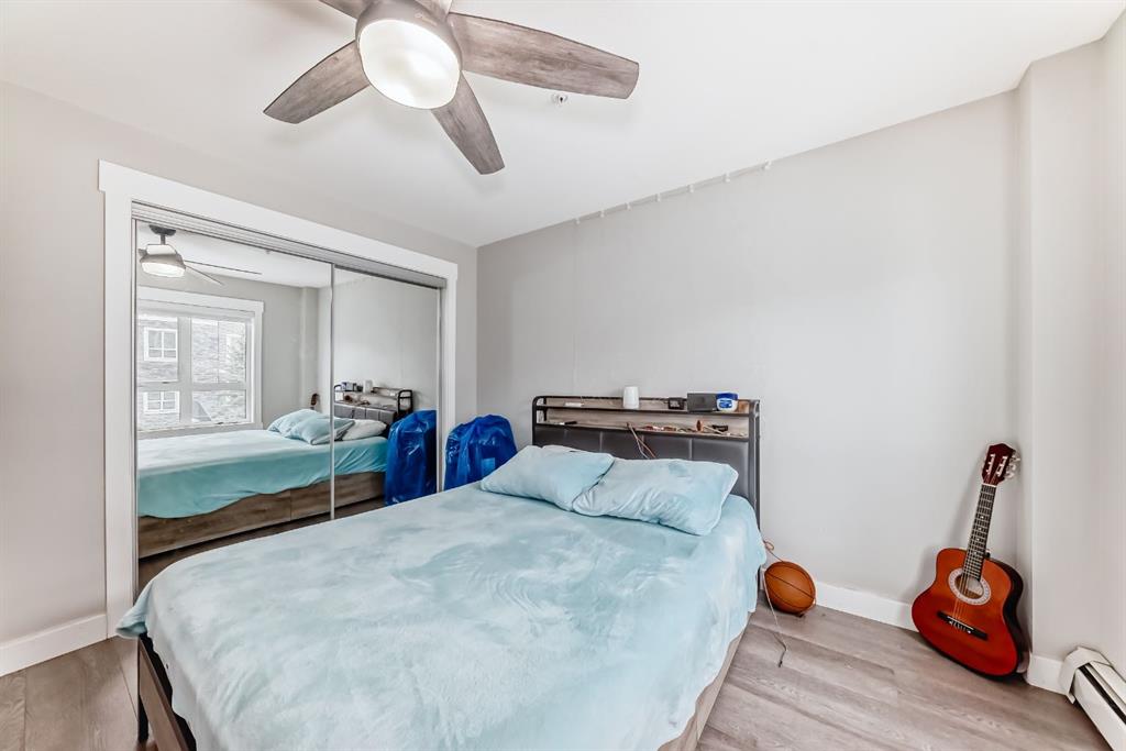 Welcome to this beautifully maintained and UPGRADED CORNER UNIT CONDO, located on the second floor offers over 943.5 sq ft of comfortable living space, featuring 2 spacious bedrooms, 2 full bathrooms, and the convenience of titled heated underground parking and secure caged storage locker. As you enter, you’ll be greeted by an open-concept design that includes a well-appointed kitchen, a dining area, and a versatile flex space perfect for an office. The kitchen is a chef’s dream, featuring a large counter with bar seating, granite countertops, stainless steel appliances. The owner has invested over $15k in upgrades including CUSTOM CABINETRY , HALL TREE ENTRYWAY BENCH ,COAT RACK with SHOE STORAGE, SMART LOCK for main DOOR , WATER PURIFIER ,SAMSUNG DISHWASHER, NEW LIGHT FIXTURES( Kitchen and dining) and BOTH WASHROOMS FIXTURES, New VINYL PLANK FLOORING (no carpet) has been installed throughout the unit, PATIO TILES, REMOTE CONTROLLED ZEBRA BLINDS for all windows and CEILINGS FANS in both bedrooms and Living room add extra convenience and comfort and beautiful Balcony to spend time with friends ,enjoying BBQ.Located in the vibrant Skyview Ranch community, this condo offers easy access to local amenities, parks, schools, shopping, and major roadways. Whether you’re a first-time homebuyer, a growing family, or someone looking for a modern, low-maintenance property,