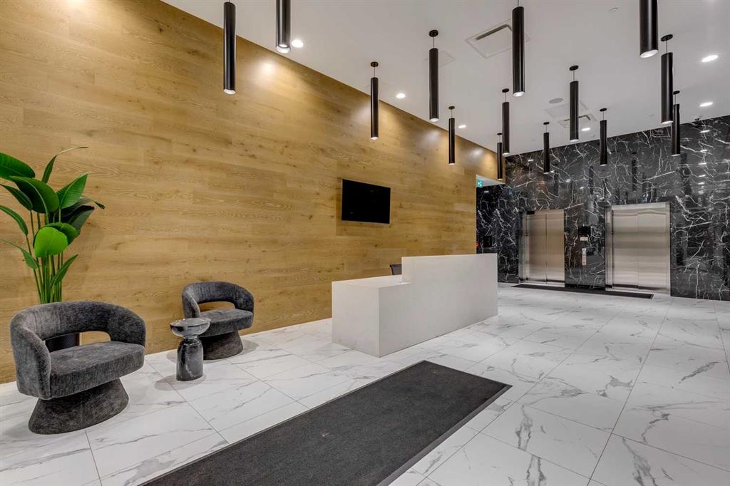 Residents enjoy access to a fitness centre, co-working lounges, a landscaped courtyard, secure bike storage, and visitor parking.