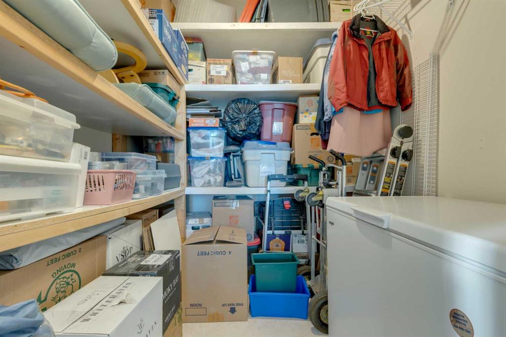Upstairs, a second-level living area and open loft overlook the main floor, offering flexible space for a media room, home office, or reading nook. Multiple additional storage spaces, including a dedicated storage room and an upper loft, make organization effortless—something rarely found in condo living.