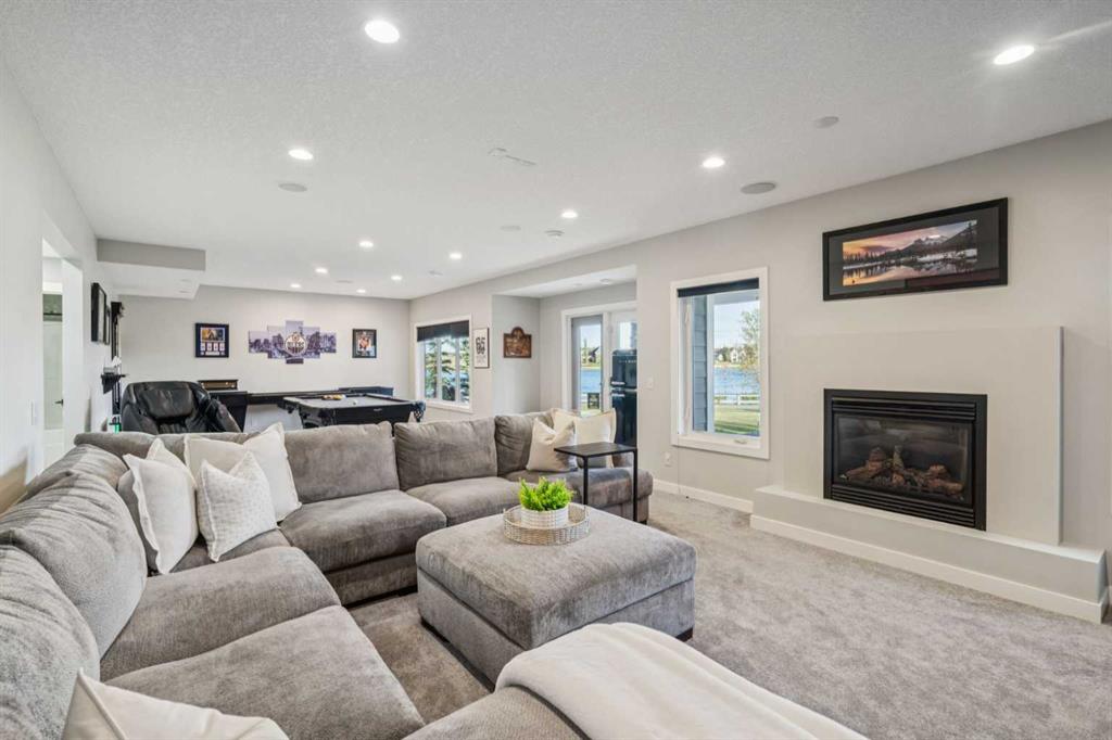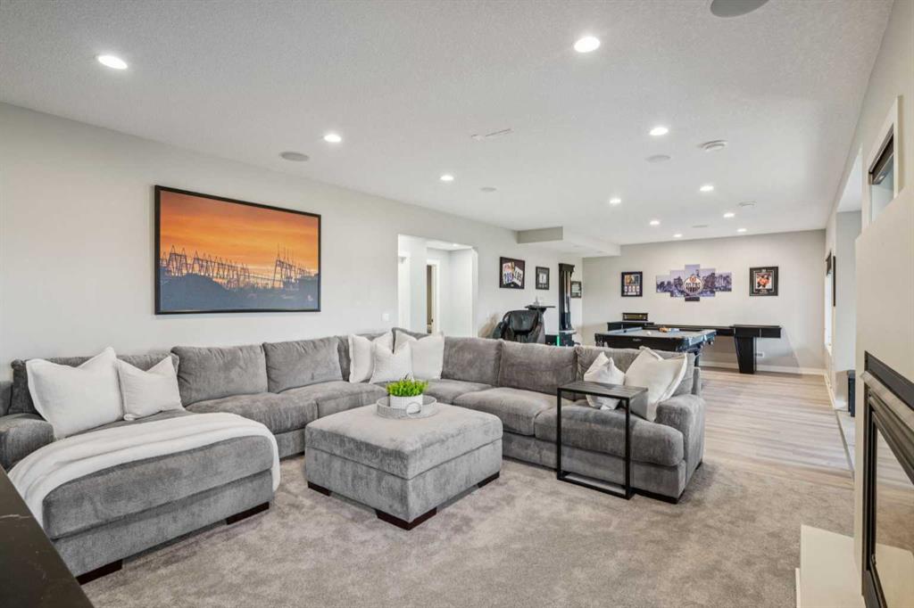 The FULLY FINISHED, WALKOUT BASEMENT includes a 5th bedroom with a California Closet, a newly updated bathroom, GAS FIREPLACE, and stylish NEW FLOORING. The Rec Room includes a POOL TABLE and RACK (new 2024) and a CUSTOM SHUFFLE BOARD adding extra fun to entertaining and family gatherings!