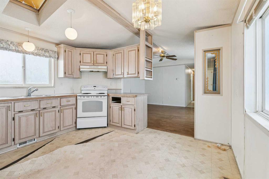 Chateau Estates – 428, 1101 84 Street NE: HANDYMAN SPECIAL – Fixer Upper – SOLD AS IS, WHERE IS. Surrounded by new developments of Huxley and Belvedere, this property offers you the opportunity to be in the heart of emerging neighborhoods. This modular home features nearly 1,000 sq ft of living space, ready for your personal touch. The home offers a large primary bedroom with a 4-piece ensuite, two additional bedrooms, a 4-piece main bathroom, an open-concept kitchen, a spacious living room, and a laundry room. Situated on a large lot with a shed and a two-car parking pad. This home offers easy access to major traffic routes and Calgary Transit (Bus Route 440) and is located just south of Highway 1, east of Stoney Trail. The prime location also provides easy access to nearby amenities. Visit the East Hills Shopping Centre for shopping, Costco/Walmart, movie theatres, and more. Minutes to Deerfoot Trail, Downtown, Airport, Golf Courses and Chestermere Lake. Price reflects its current condition – tremendous potential. Call for info!