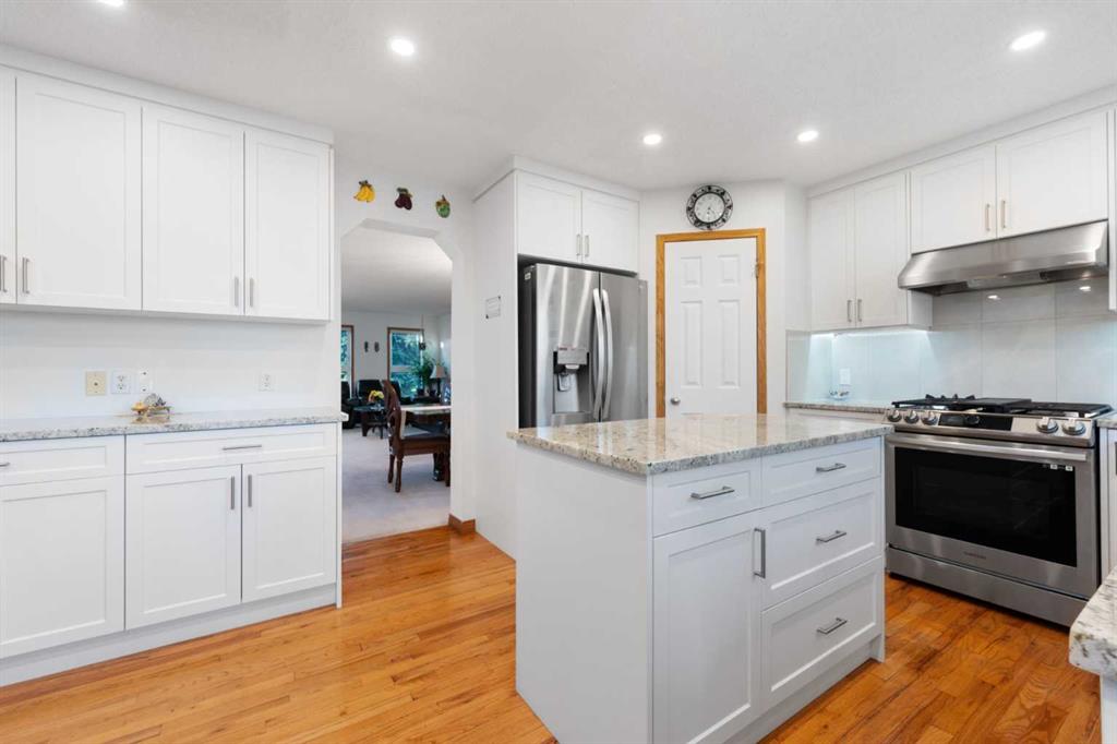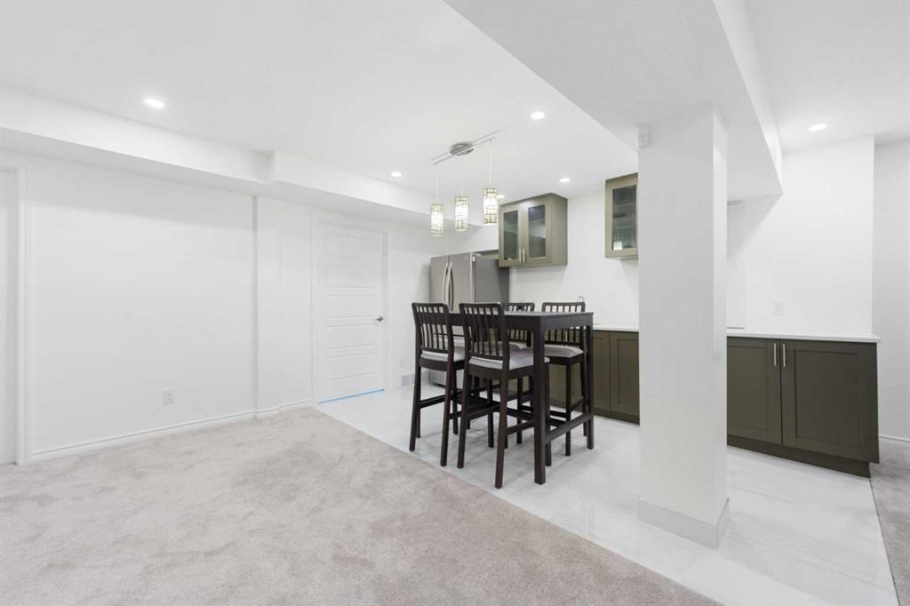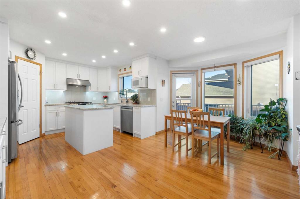 This exceptional home showcases a wide range of upgrades, including central air conditioning, triple-glazed windows, Hardie Board siding, a newer roof, top-of-the-line windows covering, and a premium Vent-A-Hood fan—just to name a few. With so many enhancements, this home truly must be experienced in person to fully appreciate its quality, design, and craftsmanship. The main floor features a bright, open-concept layout with a centrally positioned chef-inspired kitchen, a welcoming front formal living room, and a stunning family living room with soaring high ceilings, a spacious dining area, and a sun-filled breakfast nook overlooking the backyard. The kitchen is beautifully appointed with quartz countertops, a gas stove, premium stainless steel appliances, a pantry, and elegant lighting, including newly added pot lights. A main floor office/den adds flexibility for work or study. Upstairs, you’ll find three generously sized bedrooms, including a spacious primary retreat featuring a sunny southeast-facing bay window, a large walk-in closet, and a renovated 4-piece ensuite complete with a soaker tub and a separate standing shower. Two additional well-sized bedrooms and another full bathroom complete the upper level. As you move through the home, the soaring ceilings and abundance of windows create a bright and airy atmosphere filled with natural light. The fully renovated basement offers incredible additional living space, featuring a kitchenette/bar area, a spacious bedroom, and a full bathroom with direct access from the bedroom, allowing it to function as a private ensuite—perfect for guests or teenagers seeking their own space. The large recreation area is ideal for entertaining, and the ample built-in cabinetry provides excellent storage solutions. The home sits on a corner lot, allowing for abundant sunlight throughout the day. The current owners have meticulously maintained the home and invested approximately $215,000 in renovations, reflecting pride of ownership throughout. Located in a highly desirable area, this home falls within the school bus zones for Tom Baines School (Junior High) and Edgemont School (K–5), with Sir Winston Churchill High School as the designated high school—one of the most sought-after schools in Calgary NW. This move-in-ready home combines space, style, and premium upgrades in an unbeatable location. Call today to book your private viewing!