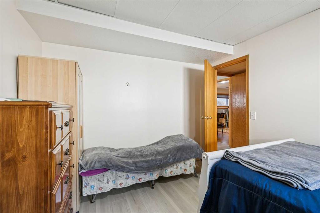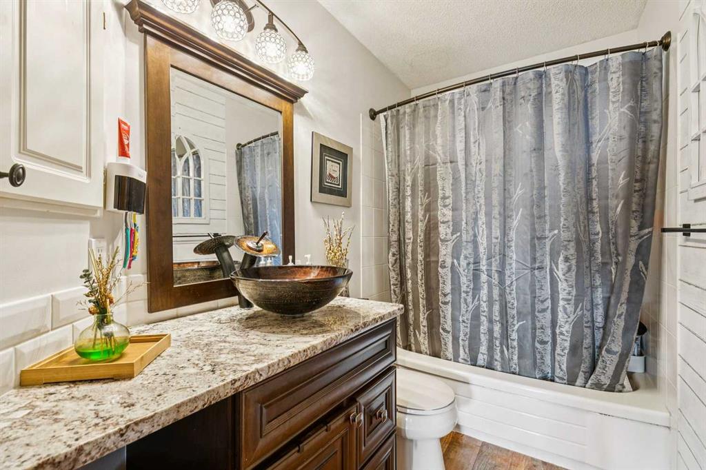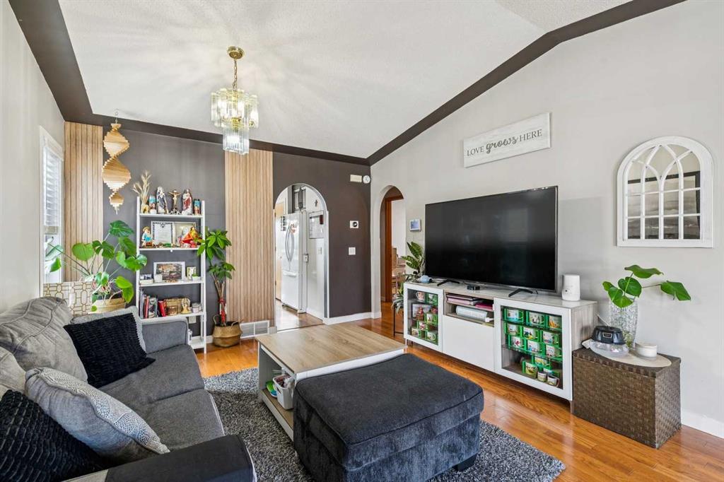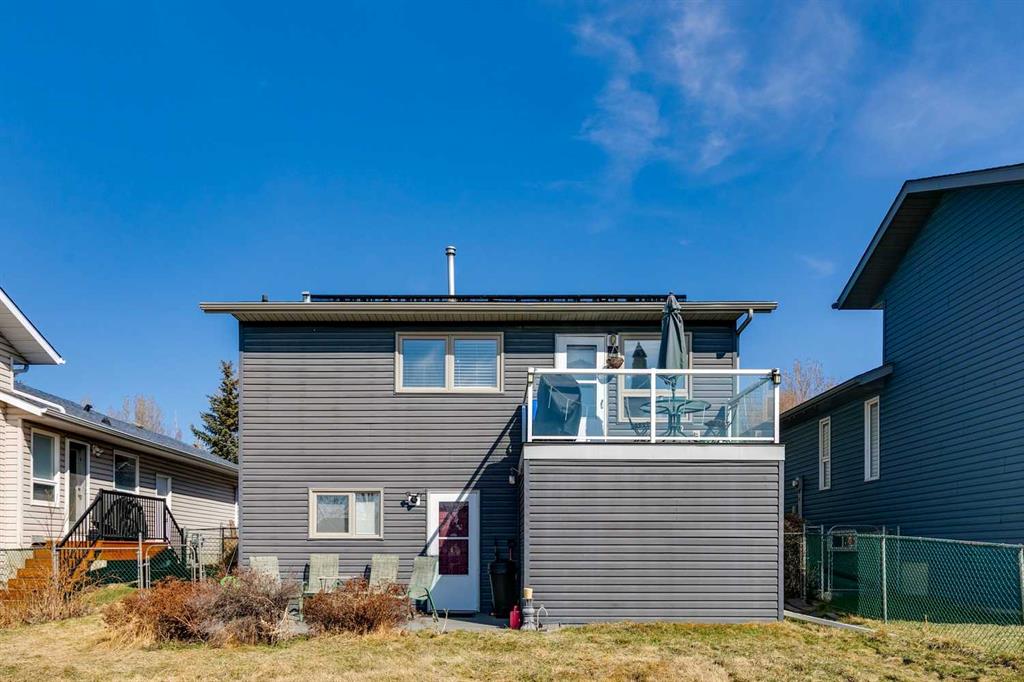 FULLY DEVELOPED WALKOUT BI-LEVEL BACKING ONTO GREEN SPACE! Welcome to 43 Elizabeth Way SE in Airdrie — a well-maintained and thoughtfully updated home offering over 2,200 sq ft of developed living space, perfectly positioned with direct access to a park and green space right out your back gate. The main level is bright and inviting, featuring vaulted ceilings and beautiful hardwood flooring in the spacious living room, enhanced by a stunning bay window that floods the space with natural light. The renovated kitchen offers rich cabinetry, granite countertops, and a functional layout that flows seamlessly into the sunny dining area — ideal for everyday living and entertaining. Upstairs you’ll find three well-sized bedrooms, including a comfortable primary retreat complete with a 3-piece ensuite and walk-in closet. The main bathroom has been tastefully updated, adding to the home’s overall appeal. The fully developed walkout basement provides exceptional additional living space with a large family room featuring a cozy gas fireplace and new LVP flooring. This level also includes a fourth bedroom, full bathroom, dedicated office, and a spacious rec room, making it ideal for growing families or those needing flexible space. Situated on a large lot, this property offers both privacy and convenience, with schools, pathways, and Nose Creek Park just minutes away. Added value comes with solar panels, helping to improve energy efficiency and reduce utility costs. Exceptionally well priced, this is a fantastic opportunity to own a move-in ready home in a family-friendly location with unbeatable access to outdoor space.