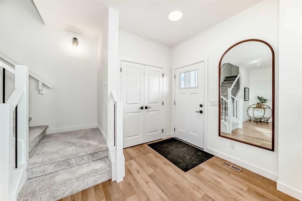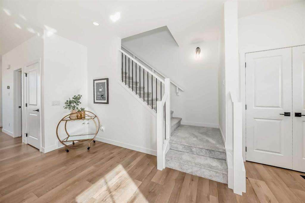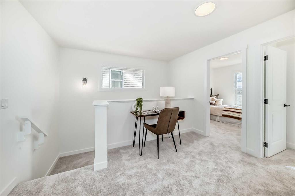As you step through the front door, you’re welcomed into a charming foyer that sets the tone for the home’s warm and open layout. To your left, a comfortable great room offers the perfect space to relax or entertain, with natural flow into the kitchen and rear dining nook. Whether you’re cooking up a weeknight dinner or gathering with friends, the open-concept design keeps everyone connected. At the back of the main floor, a two-piece bathroom and convenient storage space add practical touches that make daily living easier.