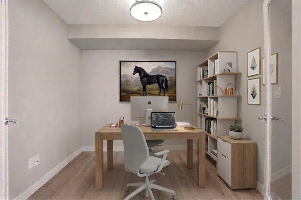Entering this home, you’re greeted by a clean inviting entry that immediately sets the tone. A Wide hallway, great flow, and a layout that feels open without losing that sense of definition. This space really opens up from the hallway passing by the den, into the main living area, and you can feel the abundance of natural light right away. The living room extends seamlessly out to the balcony, creating that indoor-outdoor connection that’s hard to find in this price range. The kitchen is sharp, modern, and very functional. You’ve got clean cabinetry lines, durable countertops, and plenty of prep space. Stainless steel appliances tie everything together, and the brightness from the surrounding windows keeps the entire space feeling fresh and open. Simple, but done right. The primary bedroom is generously sized and easily accommodates a full bedroom setup without feeling tight. That stands out here is the flow. You’ve got a walk-through closet that naturally connects into the ensuite, which adds both convenience and privacy. The three piece ensuite is clean, well laid out, and gives you that separation from the rest of the home that people are really looking for. For added comfort there is a 2nd bathroom and bedroom. It’s a practical design, but also very comfortable for day-to-day living. There are 2 titled parking stalls, ensuring parking is never a issue. Steppin outside onto the northwest facing balcony gives you open, sprawling views and great afternoon sun. It’s the kind of space where you can actually unwind at the end of the day.