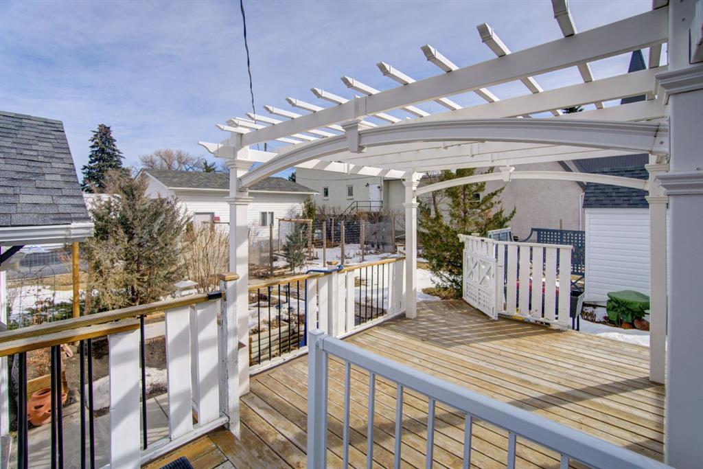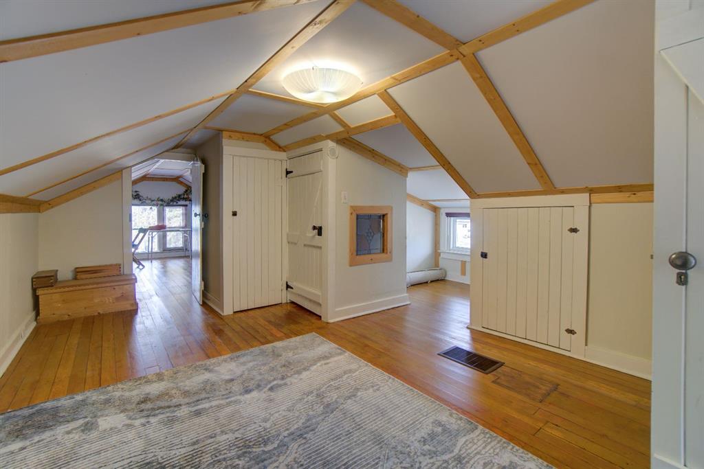 Have you been searching for a home full of character and charm? Welcome to this one-of-a-kind property ideally located within walking distance to downtown, set on an expansive corner lot surrounded by mature trees, beautiful perennials, and thoughtfully landscaped yard space. Step inside to a welcoming living room featuring large picture windows, original hardwood floors, a cozy corner gas fireplace, and built-in cabinetry, creating a warm and inviting space to gather. The home offers a true formal dining room complete with a charming transom window and a built-in corner china cabinet that could easily double as a stylish bar area. The unique kitchen showcases rounded architectural details, a large island with ample storage, and a bright breakfast nook overlooking the backyard. A convenient back entry adds functionality to the space. The main floor also features two spacious bedrooms plus a versatile office/laundry room, along with a 4-piece bathroom highlighted by a quaint chandelier that adds to the home’s character. Upstairs you’ll find two additional rooms that could be upgraded to bedrooms, along with a cozy reading or playroom area — perfect for kids, hobbies, or extra living space. The backyard is truly stunning, offering a large deck ideal for entertaining, garden boxes, deer fence around the garden area. mature trees, and flowers galore. The former single garage has been converted into the perfect workshop, and there’s still plenty of room with an oversized double detached garage and RV parking. This property offers space, charm, and endless potential — a home that truly must be seen in person to be appreciated.