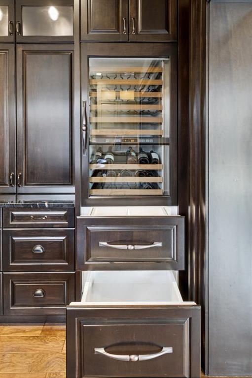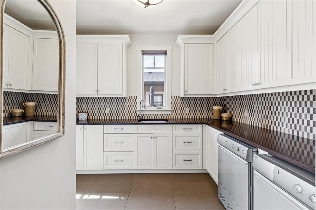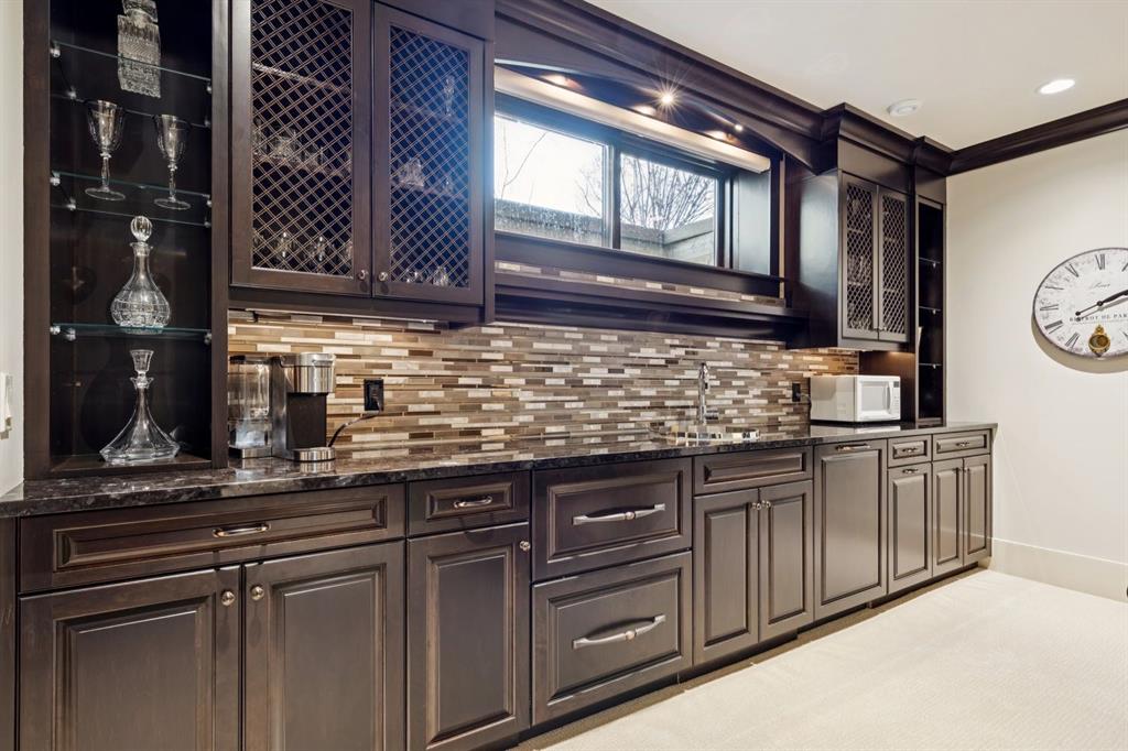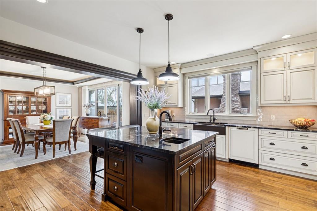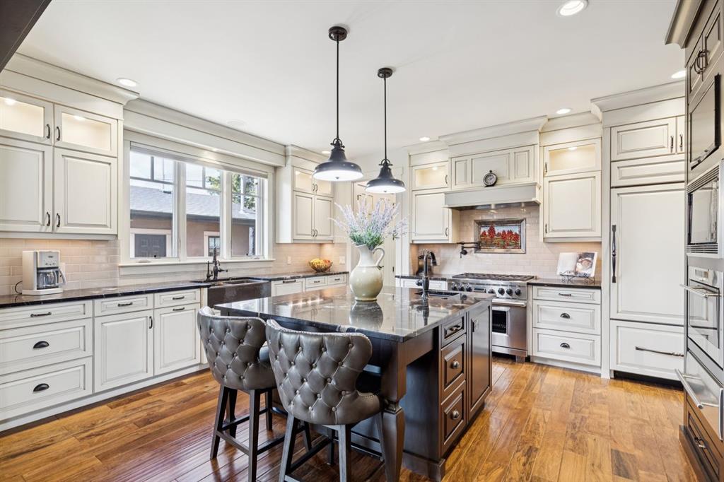 An exceptional Altadore residence where timeless craftsmanship, thoughtful design, and abundant natural light converge create a truly one-of-a-kind family home. From the moment you arrive, the stunning curb appeal and inviting front porch set the tone for what awaits inside. A grand two-storey foyer welcomes you with a striking full height stone feature wall and soaring ceilings that immediately showcase the home’s architectural presence. Gorgeous hardwood floors lead you into a breathtaking living room with vaulted ceilings, a large picture window flooding the space with natural light, and a dramatic two-way stone fireplace that seamlessly connects to the elegant dining room, complete with cove lighting and sliding glass doors opening to the rear patio. Through a beautifully crafted archway, the kitchen is nothing short of a masterpiece featuring site-built cabinetry in rich espresso and cream tones, luxurious granite countertops, and an expansive island with prep sink and seating. Premium appliances include a full Wolf gas range with pot filler, built-in Wolf microwave, steam oven, warming drawer, Sub-Zero panelled fridge, Miele dishwasher, wine fridge, and beverage drawers. A custom glass art installation by Calgary artist Julianna Reece creates a stunning focal point above the cooktop. A walk-in pantry, service area, and thoughtfully designed mudroom with convenient wash/dryer complete the space. The main floor also offers a refined den with exquisite millwork and fireplace, perfectly positioned near the elevator for added convenience. Upstairs, the primary retreat is a serene escape with vaulted ceilings, a sitting area, dressing space, and a spa-inspired ensuite featuring a clawfoot tub. A second soundproofed bedroom with ensuite ensures comfort and privacy. Designed for entertaining, the lower level impresses with a spacious family room with custom media wall, games area with a full wet bar, Miele dishwasher and two beverage drawers, and a show-stopping wine cellar. A massive rec room with cork flooring offers flexibility for a home gym and can be easily converted to include an additional bedroom, alongside a third bedroom and full bath. Outdoors, the private backyard oasis features a stone tile patio, wood burning fireplace, and mature trees for seasonal privacy, perfect for hosting or relaxing. A triple detached garage completes this extraordinary property, enhanced by Control4 automation and irrigation. Ideally located in the heart of Altadore, this home is just steps to local favourites like Neighbour Coffee, as well as highly regarded nearby schools, parks, and the vibrant amenities and dining experiences of Marda Loop, offering an unmatched lifestyle in one of Calgary’s most desirable inner-city communities.