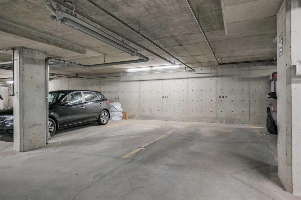 Welcome to your new home at Creekside Village in the heart of downtown—a spacious west-facing 2-bedroom, 2-bathroom condo with a versatile den designed for modern living. Perfect for couples, small families, or professionals, the den can easily be used as a home office, dining nook, or guest space, adapting to your lifestyle. Step inside to a bright open-concept layout with a wide entrance and a generous living/dining area—ideal for entertaining or relaxing. The upgraded kitchen features granite/quartz countertops, stainless steel appliances, ample cupboard space, and a breakfast bar. A separate in-suite laundry room provides added convenience, while the primary bedroom offers a private en-suite with a walk-in shower and granite vanity. The second full bathroom includes a soaker tub and matching granite vanity, and both bedrooms feature large windows and ample closet space for natural light and functionality. Enjoy your morning coffee or evening wind-down on the covered patio and take advantage of 2 titled underground parking stalls for year-round security and ease. Located in a vibrant community in Downtown Airdrie, this condo places everything at your fingertips: Midtown Shopping Square, grocery stores (Sobeys), restaurants, coffee shops, salons, medical clinics, pharmacies, day care, yoga/fitness centers, playgrounds, schools, and parks—all just a short walk away.