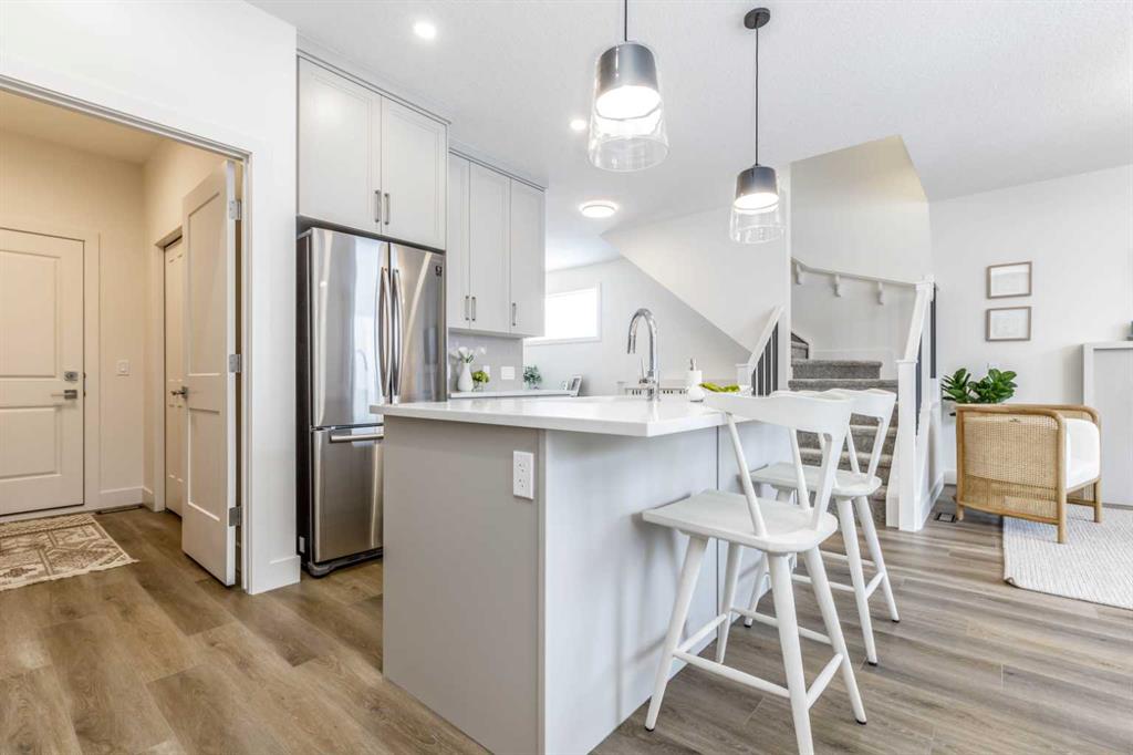 **Nearing Completion!** Janssen Homes Ltd welcome’s you to the “busy, everyday life style” well thought out floor plan. Please experience the Redwood, this modern new 1889 sqft, 2-storey family home with plenty of space to raise a family and perfect for first time home buyers! This open floor plan with 9′ walls flows throughout the open concept living room to kitchen with a large nook area where plenty of light is coming in from the 8′ patio sliding doors that gives you access to the 12′ x 10′ deck. The mudroom is complete with a built in bench and closet and shares a generous space with a large pantry off the kitchen. Main floor Kitchen is equipped with full-height cabinets, soft close doors and drawers with full extension glides, quartz counters, undermount sink and 5 stainless steel appliances. The upper level gives way to a spacious bonusroom, two bedrooms and a roomy primary retreat with ample space for a king-sized bed. The primary bedroom is complemented by a well-appointed 5-piece primary ensuite with a soaker tub, separate 42″ x 54″ walk-in shower with fiberglass base and tiled walls and a separate full-size walk-in closet. Also on the upper level is a convenient laundry area with sink and cabinet and room for a side-by-side washer and dryer, a 4-piece main bath with tub-shower, and two additional generously sized bedrooms. Stairs from main to upper area are equipped with lacquered railings and metal spindles, luxurious vinyl plank flooring throughout the main level, carpet on upper stairs to upper level, stairs up and stairs down to basement with door and a landing at the bottom. Tile in the upper laundry and main bath. The Kitchen, Laundry main bath and primary also feature quartz tops and undermount sinks. Energy-efficient elements include LoE Argon slider windows, R-50 attic insulation, high-efficient furnace with a programmable thermostat and drip humidifier. Water is provided through a tankless hot water “on-demand” system. Completion estimated to be end of July 2026 Please note **** ALL PHOTOS ARE OF PREVIOUS BUILDS**** Microwave hood fan is now a chimney fan with separate microwave and fireplace is not linear.