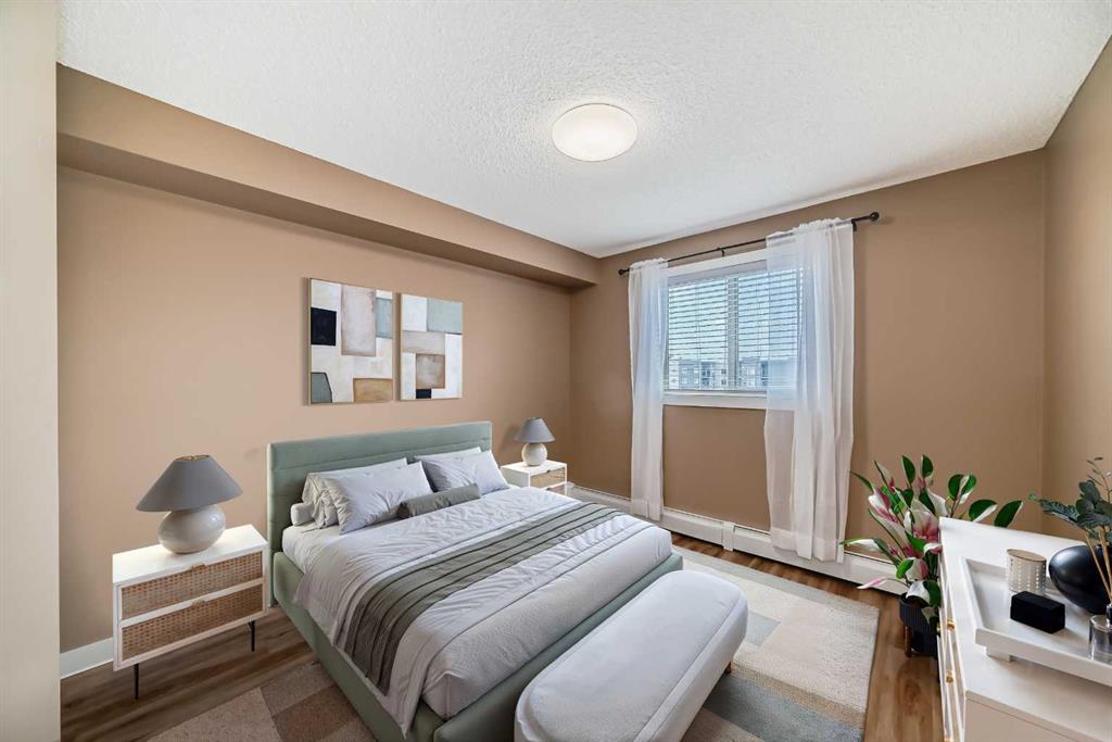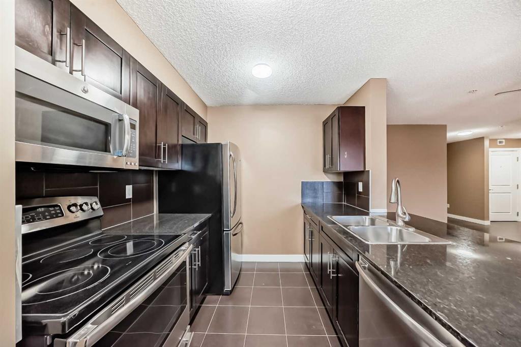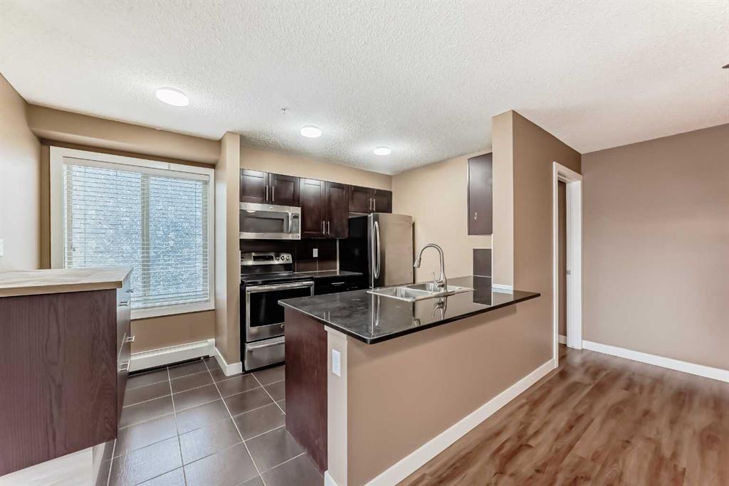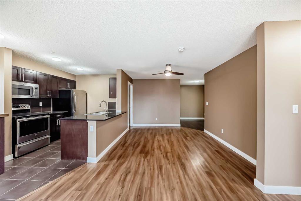 What a deal! DOWN-SIZERS, INVESTORS, FIRST-TIME HOME BUYERS – Don’t miss this opportunity for a CORNER UNIT Apartment in the desirable apartments of Creekside Crossing in Airdrie. Corner Unit means: more space, more windows (feels less like an apartment), more parking and guess what?? this unit is also SOUTHEAST-FACING – letting in all the natural light! When you enter the you have tons of room to take off your shoes and a convenient Den space located right beside – perfect for your at-home office or additional storage. The open floor plan leaves enough room for a large dining table and makes it easy to entertain. Your Kitchen has Stainless Steel Appliances, lovely Granite Counters and Additional Cabinetry has been added for even more storage. The Covered Deck is great to enjoy the outdoors through allllmost all of our seasons, just imagine drinking your morning coffee and watching the sunrise. There are TWO Bedrooms. One is your traditional Bedroom located directly beside a 4-Piece Bathroom – this is perfect for Guests, or Roommates. The Primary Bedroom has its own Walk-through Closet on your way to your 3-Piece Ensuite (with walk-in shower). Laundry is convenient and easy, located right inside your unit. Not many apartments come with 2 PARKING STALLS both of which are underground. They are right beside the elevator making trips to your apartment easy! The building itself couldn’t be in a more convenient spot – this is Airdrie’s DOWNTOWN. Close to Shopping, Dining, Gas, Tim Horton’s and pop onto First Ave to get to HWY 2 easily. If you want this apartment, act fast, the corner units don’t last!
