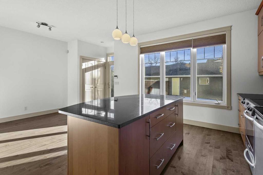 Tucked into Winston Heights–Mountview, this home carries a touch of Canmore sensibility, right in the city. The sage green stucco, stone cladding, and butter-yellow front door create an immediate sense of warmth and welcome. Step inside to a gracious living room, where a double-sided fireplace draws you naturally into the formal dining space. From there, the home opens beautifully to a south-facing kitchen bathed in natural light. Thoughtful updates include new stainless steel appliances, granite countertops, and a full pantry. It’s a space designed for real life, morning routines, evening gatherings, and everything in between. Upstairs, you’ll find three generous bedrooms and the convenience of upper-level laundry. The primary suite feels like a private retreat, with a three-sided fireplace connecting the bedroom and ensuite. Here, a soaker tub, dual vanity, and spacious walk-in closet create a calm, restorative space. The two additional bedrooms are bright and adaptable, the kind of rooms that grow with a family. Downstairs, the lower level offers a flexible living area with fresh carpet throughout, ideal for entertaining or unwinding. Beyond French doors sits a fourth bedroom with its own full ensuite, perfect as a guest suite or private office. Outside, the fully fenced, south-facing backyard provides a sunny retreat for summer evenings, while the double garage adds everyday ease. With convenient access to downtown, schools, and shopping, this home strikes a beautiful balance, neighborhood charm meets city living. Nearby, the Winston Golf Club is undergoing a significant renovation, bringing new energy to the area. The Winston Heights–Mountview Community Association is also just steps away, offering community gardens, a winter rink, and year-round programming. With excellent schools and expansive parks close by, this is a place that truly feels like home.