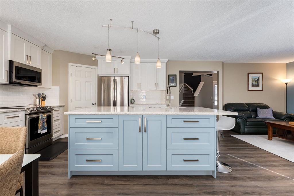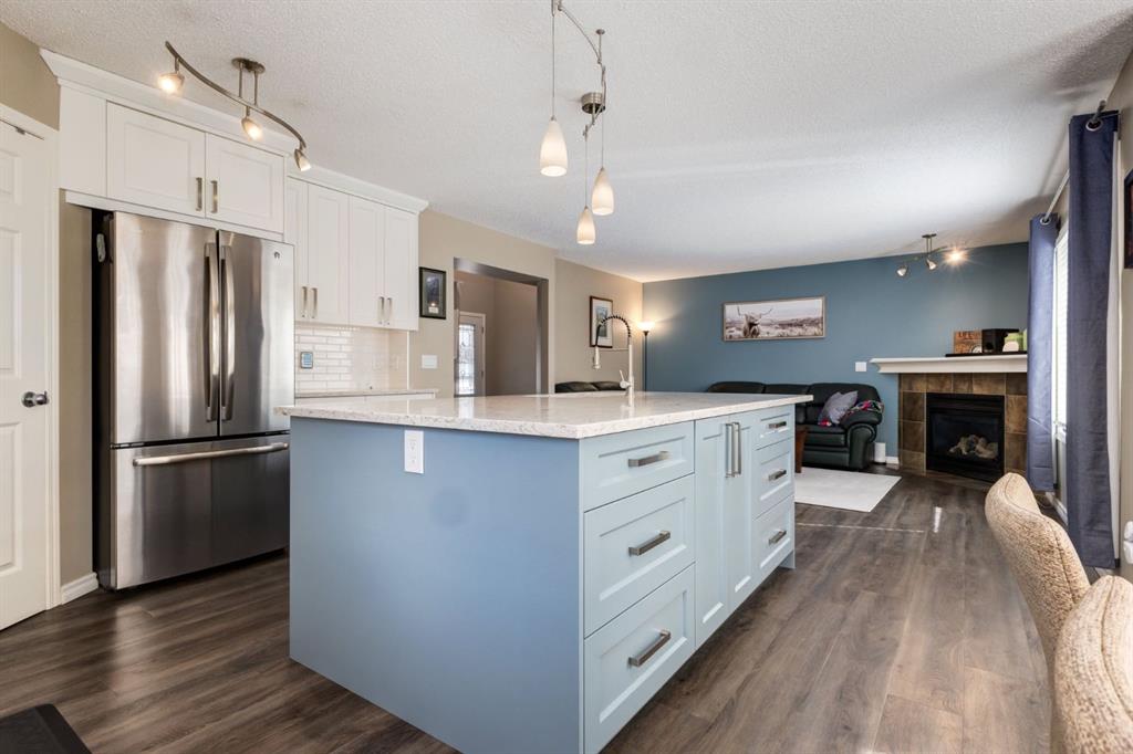 Located on a quiet cul-du-sac within the master-planned community of Bayview, this incredible family home blends timeless updates and turnkey living in a community known for its flawless blend of urban living and nature. This beautiful 4-bedroom home features over 2,500sqft of living space, a huge pie-lot, a west facing backyard oasis, has been tastefully updated with a stunning kitchen and is mere steps from the relaxing serenity of nature, the canal system, and walking paths. This location showcases a safe cul-du-sac, and provides worry-free, family friendly living with an amazing community feel. As you enter, you are greeted by a spacious front entryway with soaring ceilings and room for bench seating. The entryway leads to your open concept main living space, which boasts a newly renovated kitchen with timeless white shaker cabinetry, stunning quartz counters, pendant lighting, a corner pantry, subway tile, a coffee station, and an enormous kitchen island with accent colour. This kitchen leaves nothing to be desired and has all the storage and prep space required for your culinary endeavours. The main living space is flooded with natural light through multiple, large west facing windows that bring warmth to the home. The living room overlooks your enormous west facing back yard, and features a cozy fireplace with mantle, which creates the perfect place to stay warm and relax on cold winter days. Step outside from your kitchen onto your quality, sprawling two-tier composite deck that features privacy glass, a modern gazebo with lighting, and plenty of space to dine, BBQ and relax. The west yard features tons of space for family to play, is drenched in sun throughout the day, has garden beds, a shed, and provides a unique place to watch Canada Day fireworks from the privacy of your own deck. The main floor boasts new vinyl flooring, a spacious laundry room/mud room off the garage and is completed with an updated powder room. Upstairs boasts a huge bonus room with high ceilings and provides the perfect place to read a book, relax, or entertain friends. The expansive primary bedroom features tons of space for king-sized furniture and contains a spa-like ensuite with a massive skylight, a large soaker tub, stand- up shower and two walk-in-closets. Upstairs is completed with two additional large bedrooms, and a wonderful 4-piece bathroom. Downstairs contains an amazing media space with projector screen and hook-ups, a media tower with surround sound speakers, and plenty of room for seating. The expansive basement bedroom includes a large office nook, which is perfect for working from home or for a studious family member. The basement is completed with a large storage room, and a stunning 3-piece bathroom with warm cork flooring, an updated vanity and a large stand-up shower. This incredible family home has been meticulously maintained throughout the years and showcases stunning updates, new front steps, composite decking, and more. Don’t miss out on this opportunity.