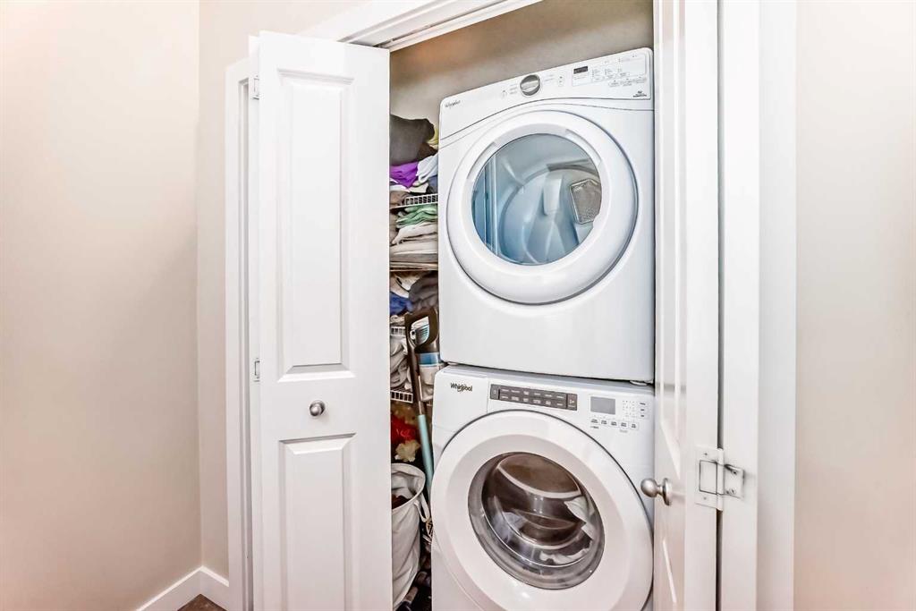 The kitchen features stainless steel appliances, while the upper level includes two spacious ensuite bedrooms with custom California closets, an ideal setup for professionals, guests, or shared living. You’ll also appreciate the convenience of upper-floor laundry and generous storage throughout.