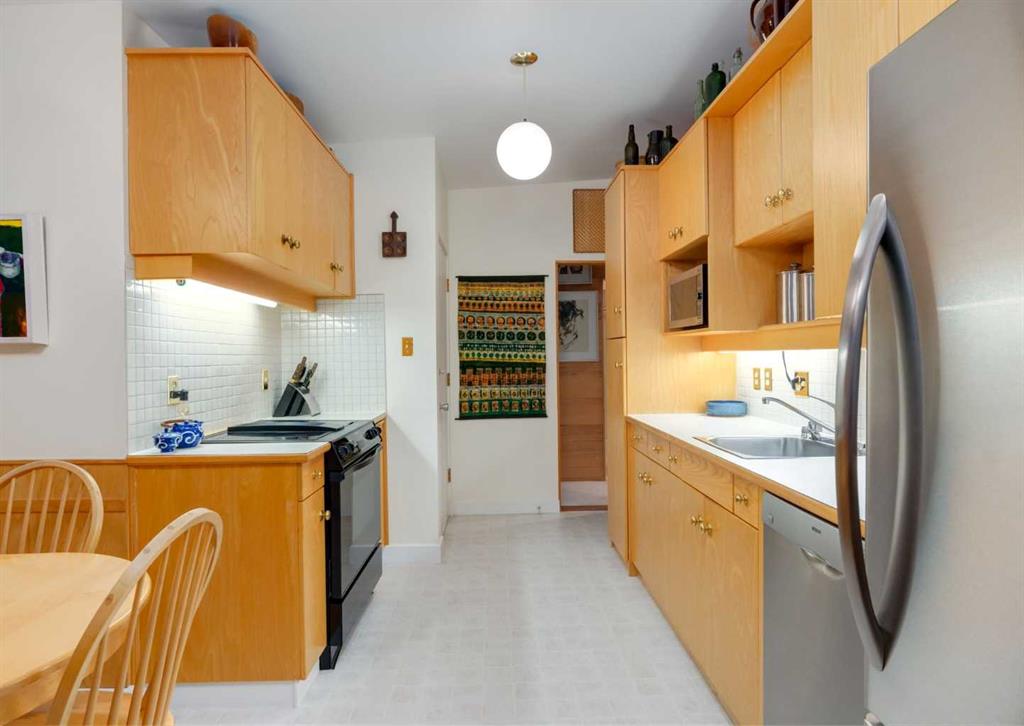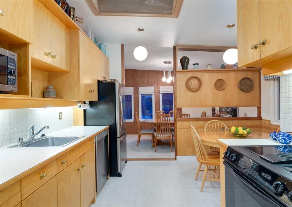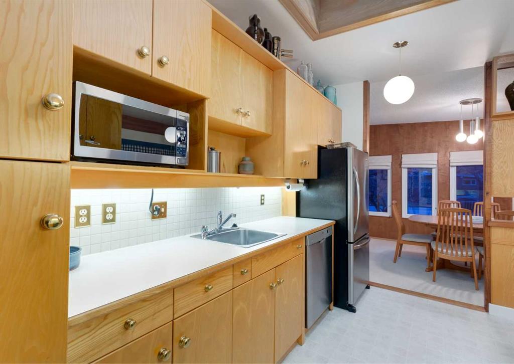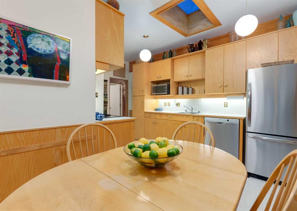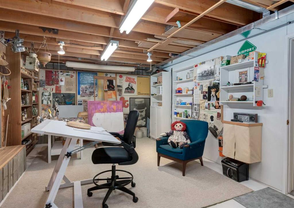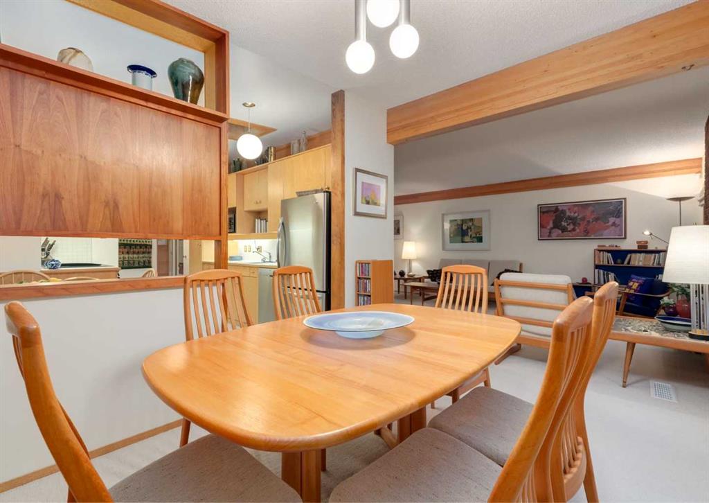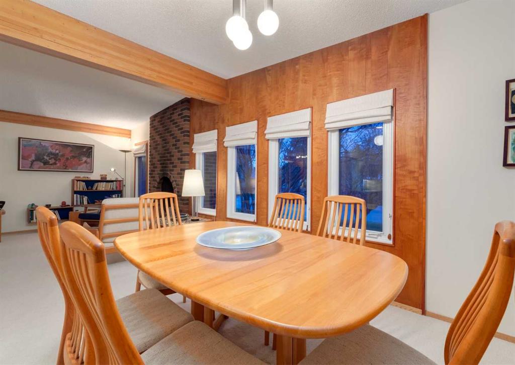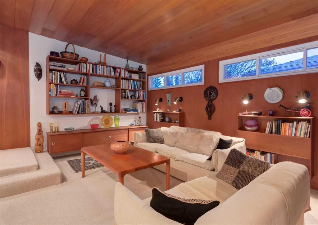 ***Open house Saturday April 25, 1-3pm*** This meticulously maintained mid-century home is a true architectural time capsule—lovingly preserved and thoughtfully crafted, with custom woodwork carried throughout nearly every space that cannot be replicated. From the moment you step into the vaulted, tiled mudroom, you’re welcomed by clean lines, natural materials, and an abundance of light streaming through the windows. The main floor den is a standout, featuring rich wood paneling and custom built-in shelving—an ideal reading or work-from-home space. A single French door leads into the living room, where a timeless wood-burning brick fireplace and windows create a warm, inviting atmosphere. The dining area seamlessly connects to the kitchen, where original cabinetry has been impeccably maintained and a skylight fills the space with natural light. This level offers three well-sized bedrooms and a full bathroom, continuing the home’s cohesive design. The lower level, with its own separate side entrance, expands the living space with a family room, a vintage-inspired 4-piece bathroom, an additional flex room, and a dedicated art studio—perfect for creative pursuits or a private workspace. Situated on a pie-shaped lot, the backyard features a large custom composite deck with plenty of room to relax or entertain. The oversized garage is a true highlight, complete with a beautifully crafted custom workbench and extensive built-in cabinetry. The studio and workshop spaces are truly special that reflect the creativity and care poured into this home over the years. This is a home for a discerning buyer—someone who recognizes the significance of mid-century design, values craftsmanship, and appreciates a property that has been carefully maintained and preserved. A truly special offering in one of NW Calgary’s most sought-after communities. Steps from Varsity Acres School and close proximity to F.E. Osborne, St. Vincent de Paul, and Marion Carson Schools. Minutes from the University of Calgary, Market Mall, Foothills/Children’s Hospital, University District, and the Bow River pathways. Opportunities like this are incredibly rare. Please click on media for the video and schedule your private viewing today.