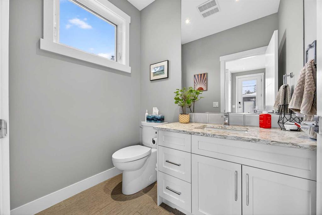 Experience refined inner-city living in this stunning 1,961 sq. ft. semi-detached home, ideally situated just steps from Confederation Park. The open-concept main floor showcases exceptional craftsmanship with 9-foot ceilings, gorgeous hardwood flooring, and a dedicated front office perfect for the modern professional. At the heart of the home, a chef-inspired kitchen features quartz counters, ceiling-height cabinetry, and a generous centre island designed for effortless entertaining. Retreat upstairs to a secluded primary suite offering a luxurious 5-piece ensuite with in-floor heating and a walkthrough closet conveniently connected to the upper-level laundry. Two additional bedrooms, laundry room connected to the primary and a full bath complete the top floor. The fully finished lower level adds a versatile family room with a stylish wet bar, surround sound and a fourth bedroom, while the private backyard features a large deck and a fully insulated double detached garage. Mount Pleasant is a vibrant community with amazing neighbors and this home is a short walk to Confederation Park and minutes to downtown, schools, recreation, shops, and dining.Amazing home in an incredible location! Call today to book your private showing!