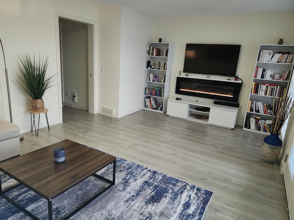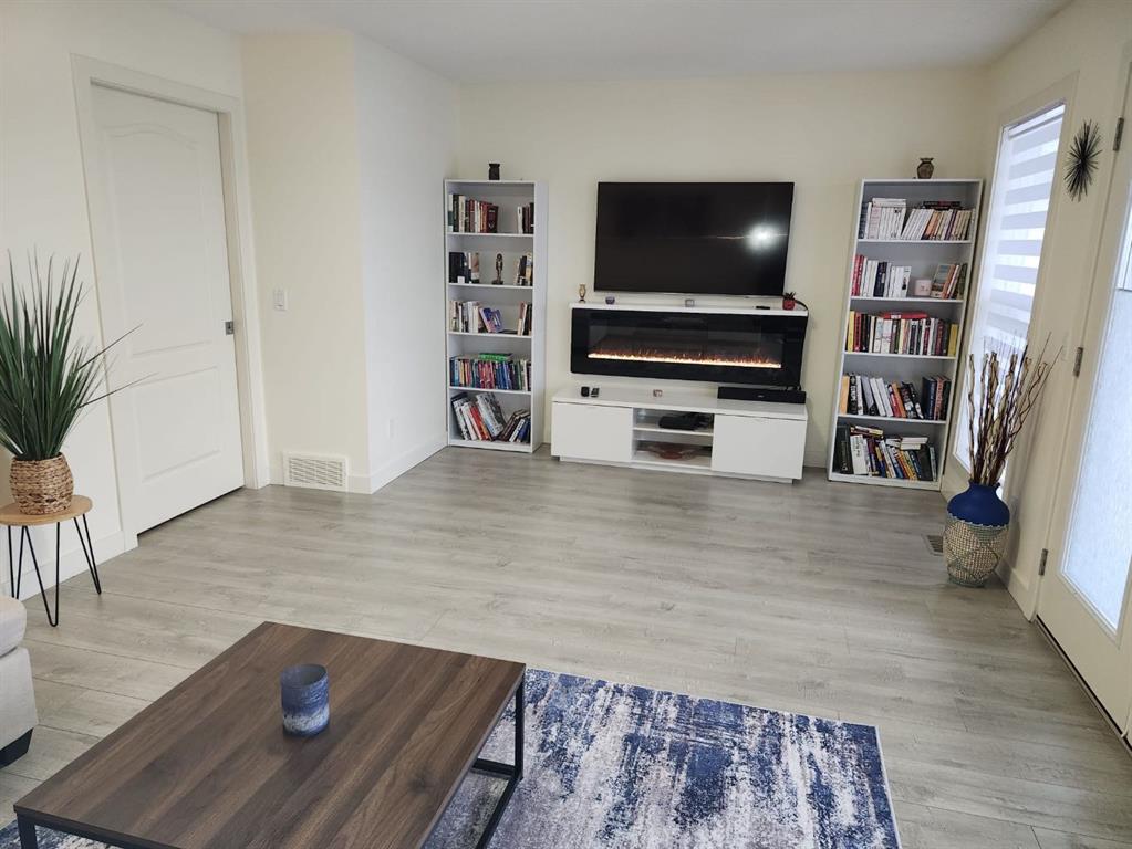 This home was beautifully renovated throughout in 2024 and the basement developed with City permits. The renovation included flooring replacement with quality laminate, painting, new blinds, new light fixtures, office enclosure, major kitchen upgrade with new kitchen appliances, and powder room upgrade. As you enter the home, you will find a French doors enclosed OFFICE where the morning sunshine enters the large window, then at the back of the home, you will find the open concept living room with gas fireplace, the kitchen with extended central island and new quartz countertops. The dining area is filled with natural light, and it has direct access to the newly refreshed deck with private panels and a new pergola, a beautifully upgraded and maintained backyard, perfect for family gatherings and weekend barbecues. You can enjoy the afternoon and evening sun in this west-oriented yard. The main floor also has an upgraded powder room, a mudroom/laundry conveniently located as you enter the home from the insulated, double garage. The mudroom extends with pantry right off the kitchen. The upstairs has a LARGE master bedroom that accommodates a king bed with an ensuite 5-piece bathroom and walk-in closet, 2 additional good-sized bedrooms, one with its own walk-in closet, another 4-piece bathroom and the family room with oversized windows and French doors that provides the perfect space for movie time, or a second living area. The family room comes with included electric fireplace. From the family room you walk on the east oriented covered balcony to enjoy the sun with your morning coffee. The basement: fully developed in 2024, offers a large recreation room, another bedroom, a 3-piece bathroom and a multi-purpose den. The basement has electric baseboard heaters in all spaces and in-floor heating in the bathroom. Both the front and the back yard have a BEAUTIFUL well-maintained lush greenery and plenty of flowers – lilac, peonies, roses. Come see for yourself! Book your private tour today. WELCOME HOME to a house that shows pride of ownership !