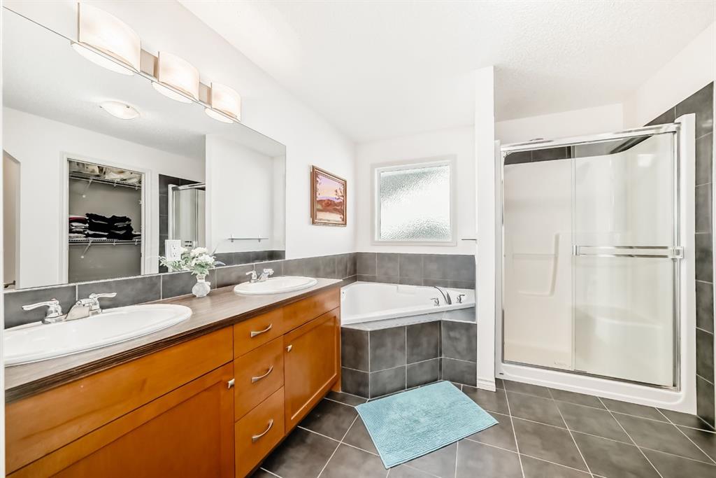 Upstairs, you’ll find three generously sized bedrooms, including a luxurious primary retreat with a walk-in closet and a spa-inspired ensuite featuring a corner soaker tub and a separate oversized shower. A stunning bonus room with vaulted ceilings and abundant natural light offers the perfect space for family gatherings or movie nights.