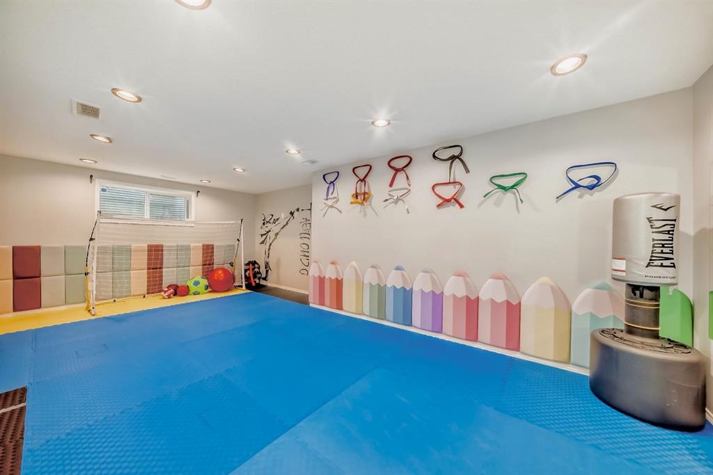 Additional highlights include recently painted walls, a fully insulated double attached garage, central air conditioning, newer hot water tank, water softener, central vacuum system and the fully equipped kids zone package in the basement.