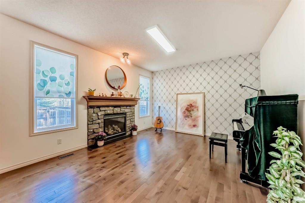 The main level features gleaming hardwood floors and an inviting open-concept layout. The gourmet maple kitchen features granite countertops, tile backsplash, stainless steel appliances, a breakfast nook, and seamless access to the spacious dining area—perfect for everyday living and entertaining. The bright and airy living room showcases a cozy fireplace, while a versatile main floor den provides the perfect space for a home office or kids’ study area. A well-designed mudroom with ample storage and convenient laundry adds everyday practicality.
