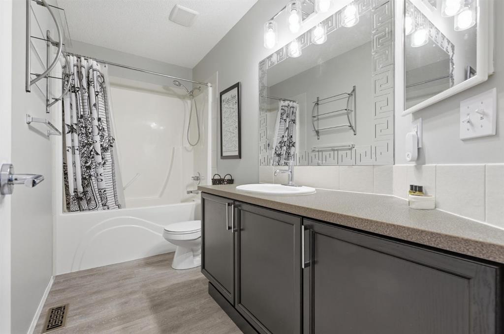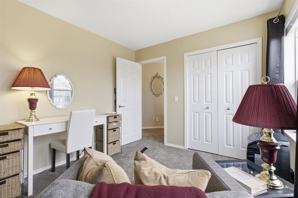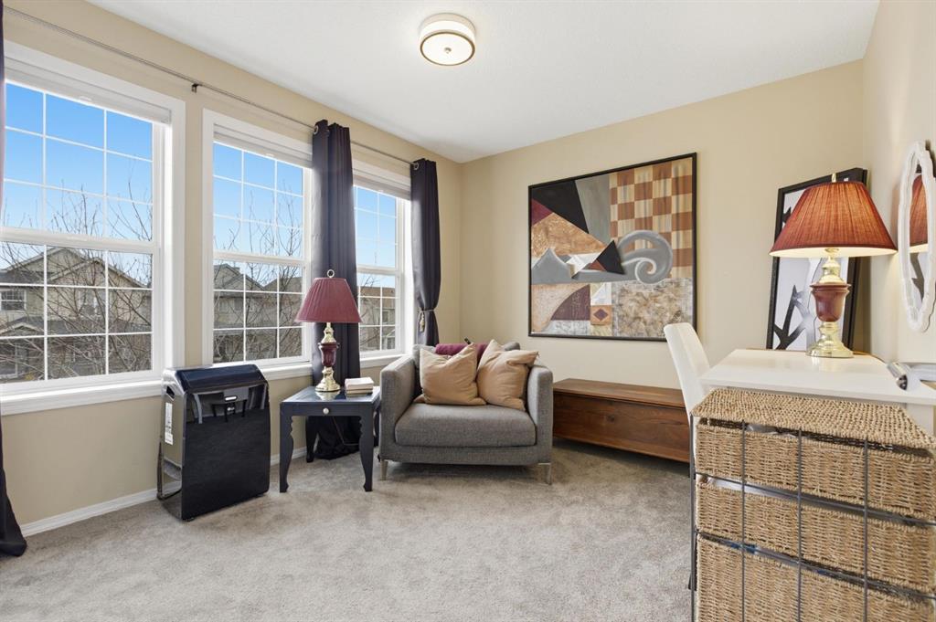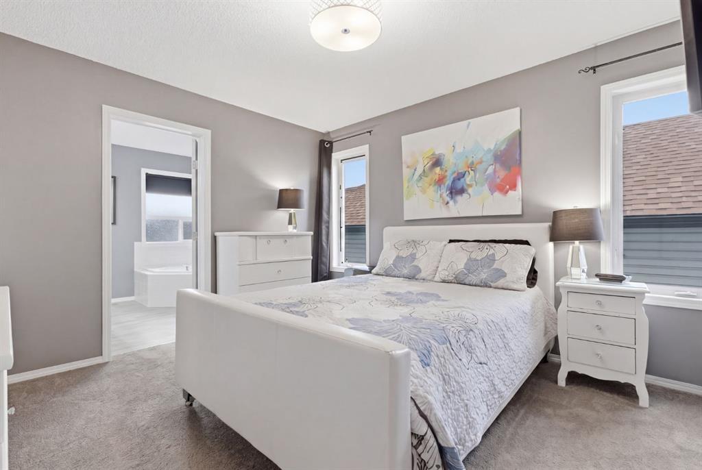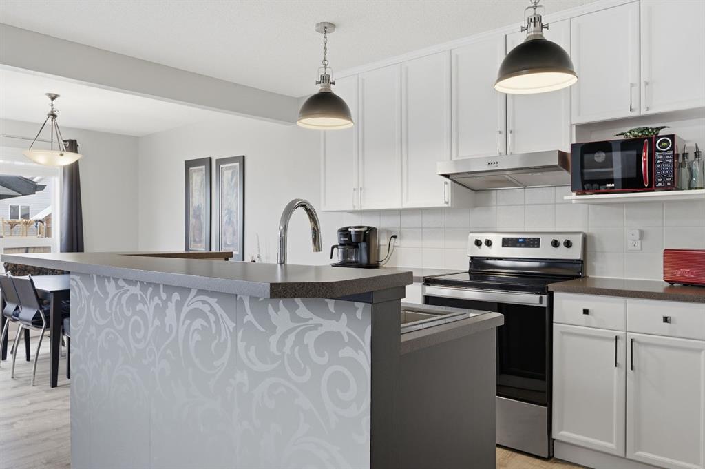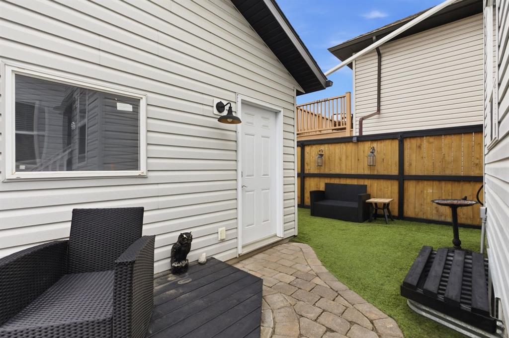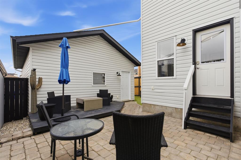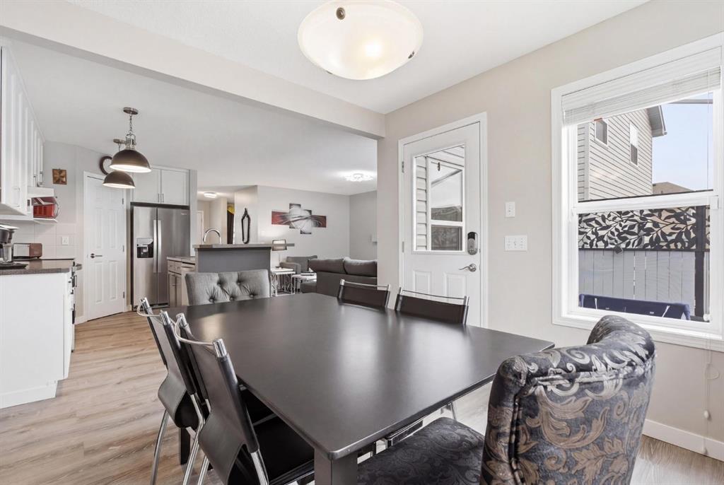 Live in the family friendly community of Cimarron. This cleverly laid out home is situated on a quiet street. As you approach you will appreciate the attractive curb appeal and inviting front porch. Throughout the home, pride of ownership is clear, with plenty of updates such as new vinyl plank flooring, stylish light fixtures, and an elegant railing. The kitchen is a focal point, boasting cabinets that reach to the ceiling, a tasteful tile backsplash, stainless-steel appliances, and a corner pantry for added storage. The large island seamlessly connects to the expansive living room, which features a gas fireplace with custom built in detail. Adjacent to the kitchen, the dining room is filled with natural light from numerous windows and provides direct access to your private backyard. This low maintenance yard has a large patio, artificial grass, a new fence and a double detached garage. The main floor is complete with a powder room tucked away as well as a front den, perfect for a home office, additional living room or kids’ playroom. Upstairs, you’ll find two generously sized bedrooms, a full 4-piece bathroom, and an expansive primary retreat. The primary suite is a true sanctuary, offering a large walk-in closet and a private ensuite with a luxurious jetted corner tub, separate shower and expansive vanity. The lower level is framed and prepped for easy future development. This home is ideally located within walking distance to schools, parks, pathways, shopping, and professional services. Schedule your private showing or view the virtual tour today.