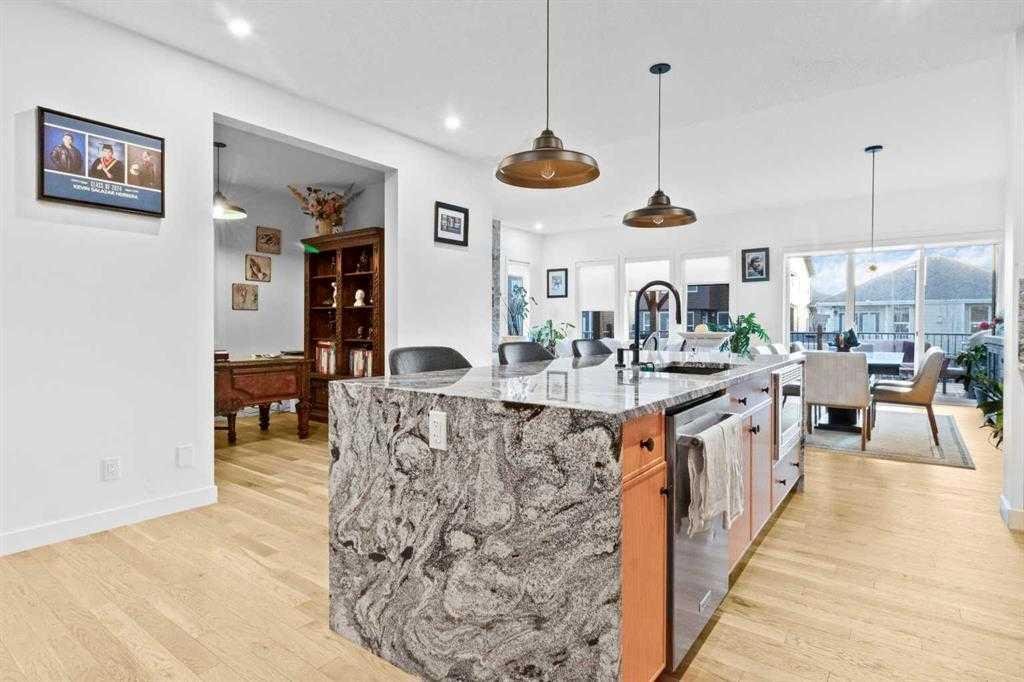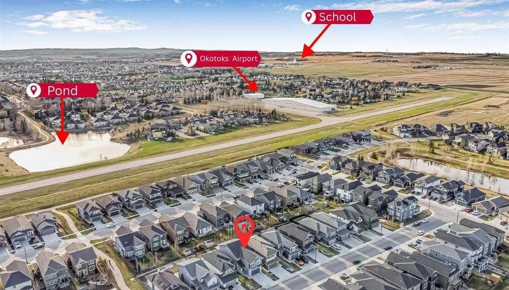 Welcome to this exceptional, fully upgraded home in the heart of beautiful Okotoks—offering quality construction and opulent features. Designed with both style and function in mind. Upon entry, this home makes an immediate impression with its soaring vaulted entry and 9’ ceilings spanning all three levels, including the basement. The rear living and dining areas elevate the experience even further with impressive 10’ ceilings and expansive windows that flood the space with natural light, creating an open and inviting atmosphere.