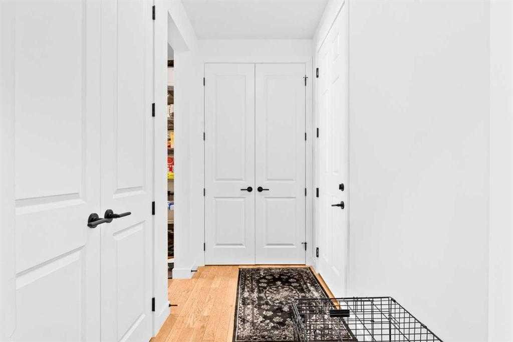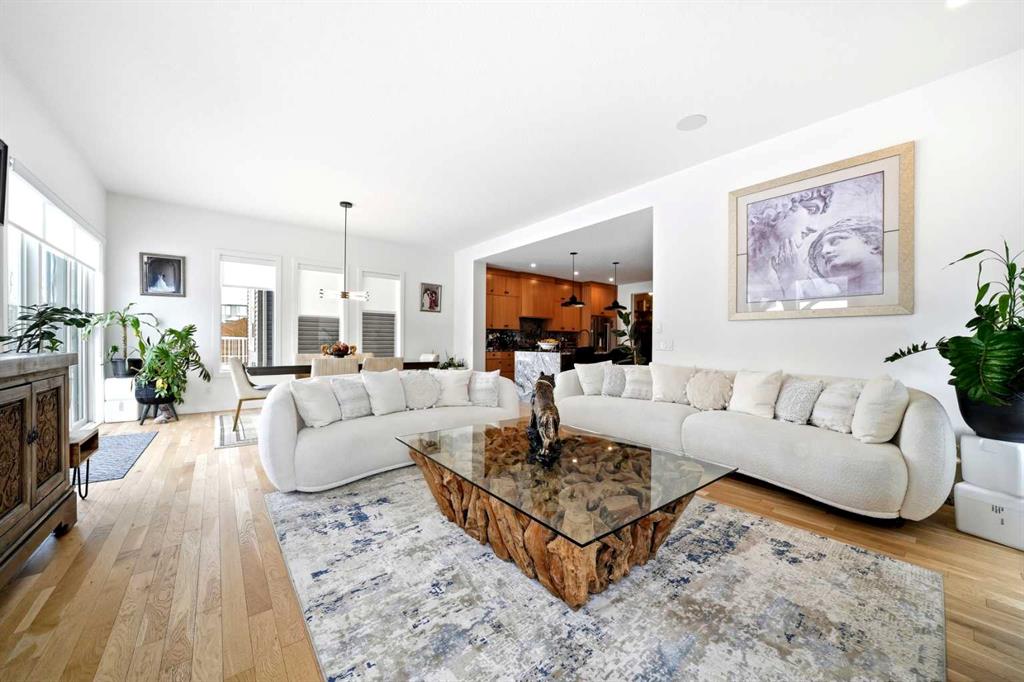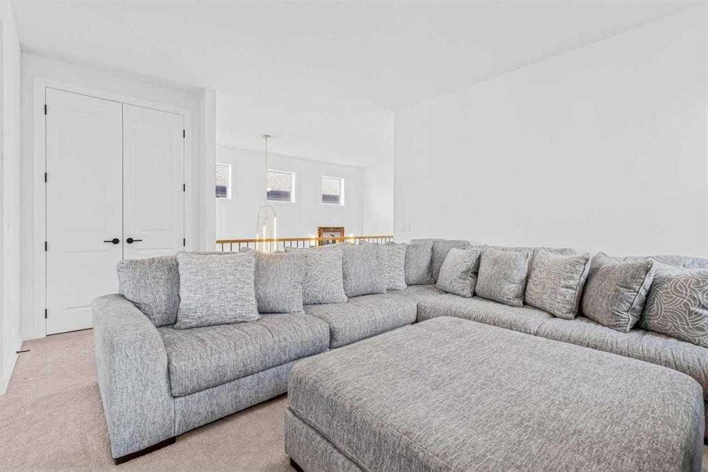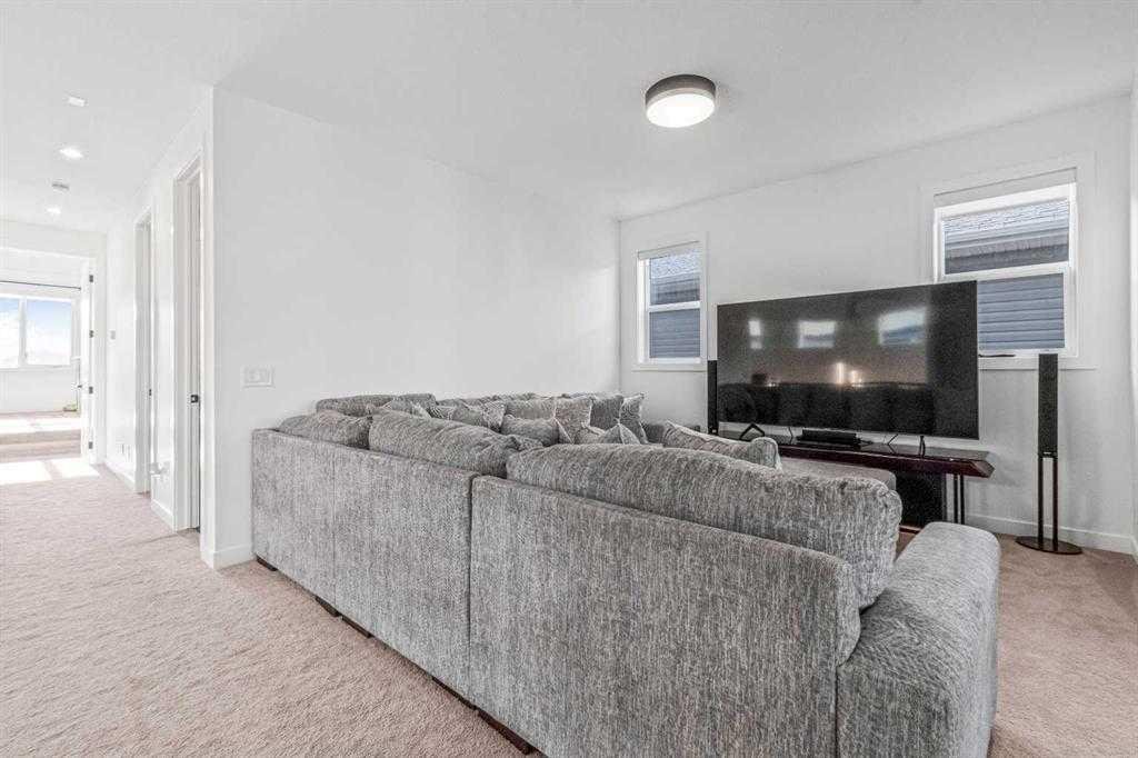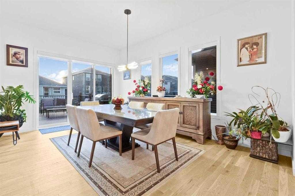Thoughtful upgrades continue throughout, including 8’ interior doors on the main and upper floors, triple-pane casement windows, an oversized 8’ patio door, and sleek black spindle railings. Mirage white oak hardwood floors extend through the main level and staircase, adding warmth and timeless elegance. The home is illuminated by designer Kuzco lighting, backed by the 5-year Alberta New Home Warranty, while roller blinds throughout provide both privacy and style.