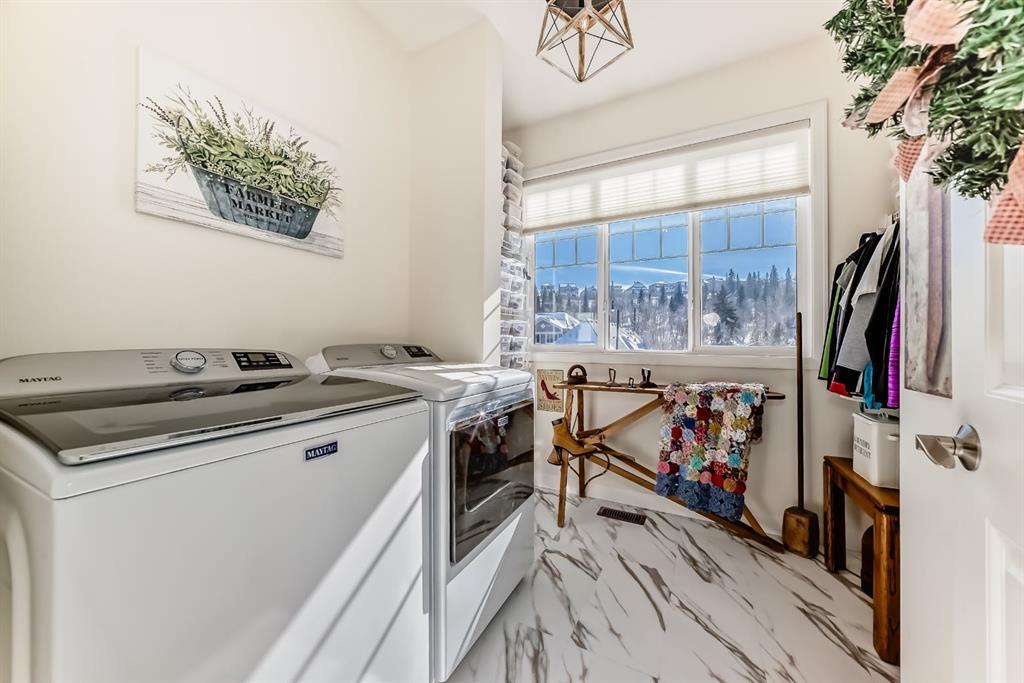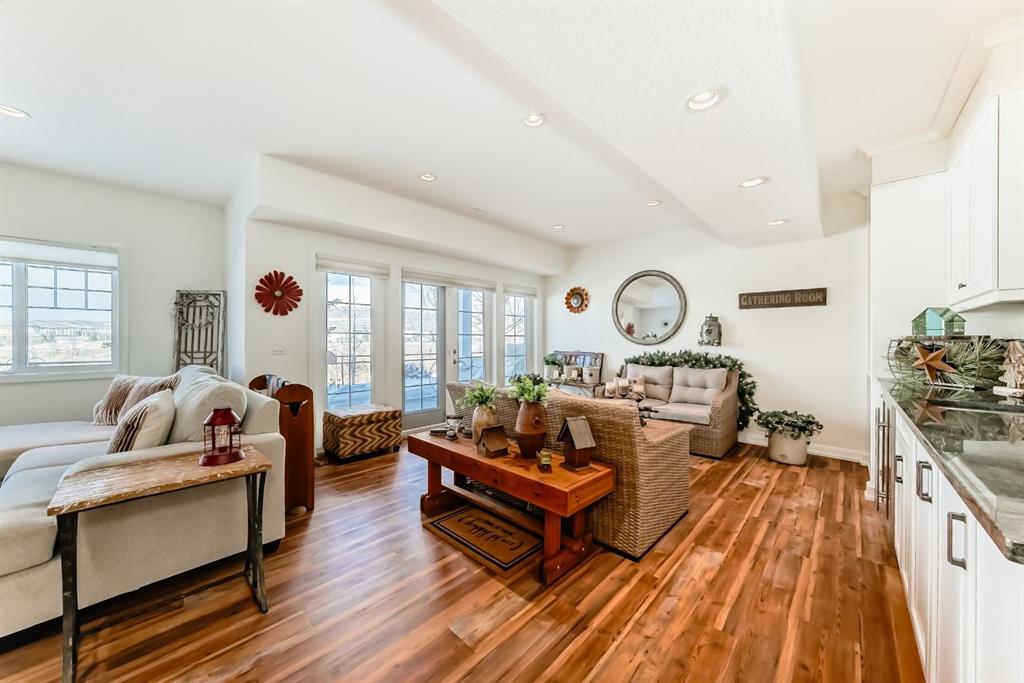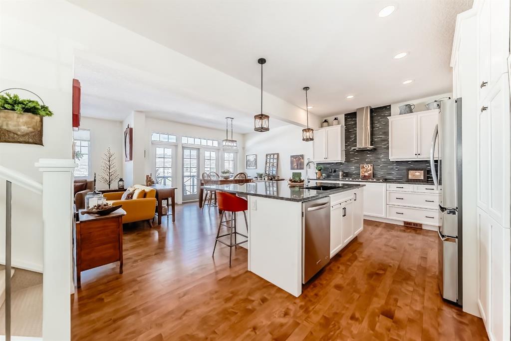 Immerse yourslef in nature with this stunning Jayman built property backing directly onto the Bow River, offering unobstructed views and direct access to the scenic pathway system. From the moment you step into the bright, sun filled foyer, you’ll appreciate the thoughtful design and exceptional attention to detail throughout. Pride of ownership shows as soon as you walk through the front door. The chef inspired kitchen features granite countertops, an oversized island perfect for entertaining, wall overn and microwave, gas stove with hood fan, high end stainless steel appliances and all new hardware on the kicthen cupboards and drawers. The open concept kitchen seamlessly flows into the dining area, which opens onto a raised vinyl wrapped deck ideal for summer BBQs and evening drinks overlooking the river. The spacious living room invites you to unwind beside the cozy gas fireplace adorned with a 200 year old barn wood mantle, barn wood panels and stacked stone surround. While upstairs you’ll find three generously sized bedrooms, a full guest bath with closet, and a beautiful primary retreat with gorgeous views complete with a large walk in closet and a luxurious ensuite featuring double vanities, a glass walk in shower, and a deep soaker tub where you can relax while enjoying peaceful river views. Conveniently the spacious upper floor laundry adds everyday ease with views of the nature reserve to the south of the home. The upper level also has a spacious walk in linen closet. The fully finished walkout basement expands your living space with a stylish sitting area with updated vinyl plank flooring (2022), 4 piece bathroom with updated luxury vinyl plank flooring, wet bar, built-in wine rack, custom cabinetry, and a high end wine fridge. The family room/game room opens onto a private patio and green space. With a fully finished double attached garage with appoxy flooring, additional storage, and truly one-of-a-kind riverfront views, this exceptional home offers the perfect blend of luxury, comfort, and lifestyle! All updates include: hardwood flooring refinished in 2025, luxury vinyl flooring in basement, upper level & bathrooms completed in 2022, the fridge, washer & dryer were all replace in 2022, all new paint throughout the home was also completed in 2022. The furnace and HWT are original and are serviced annually. Book a showing today at this beautiful river front property!