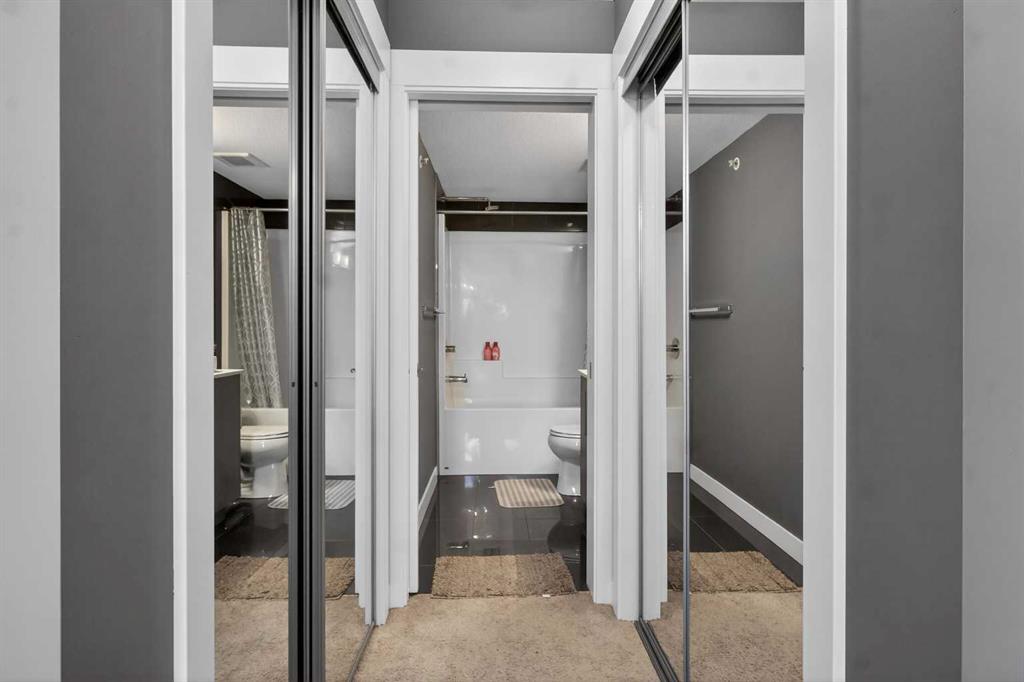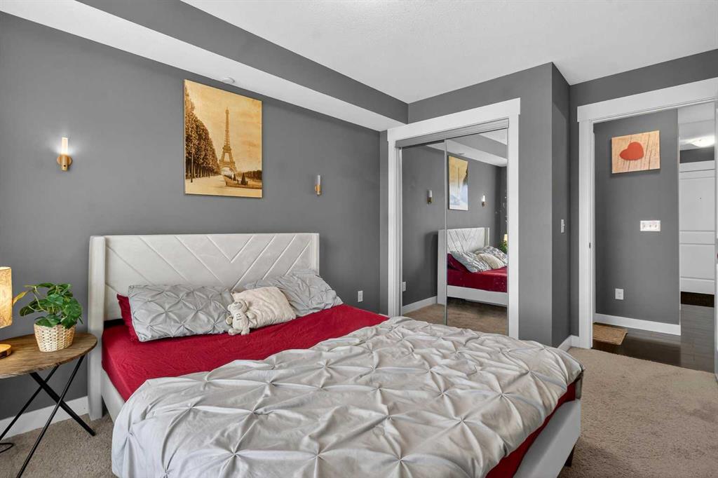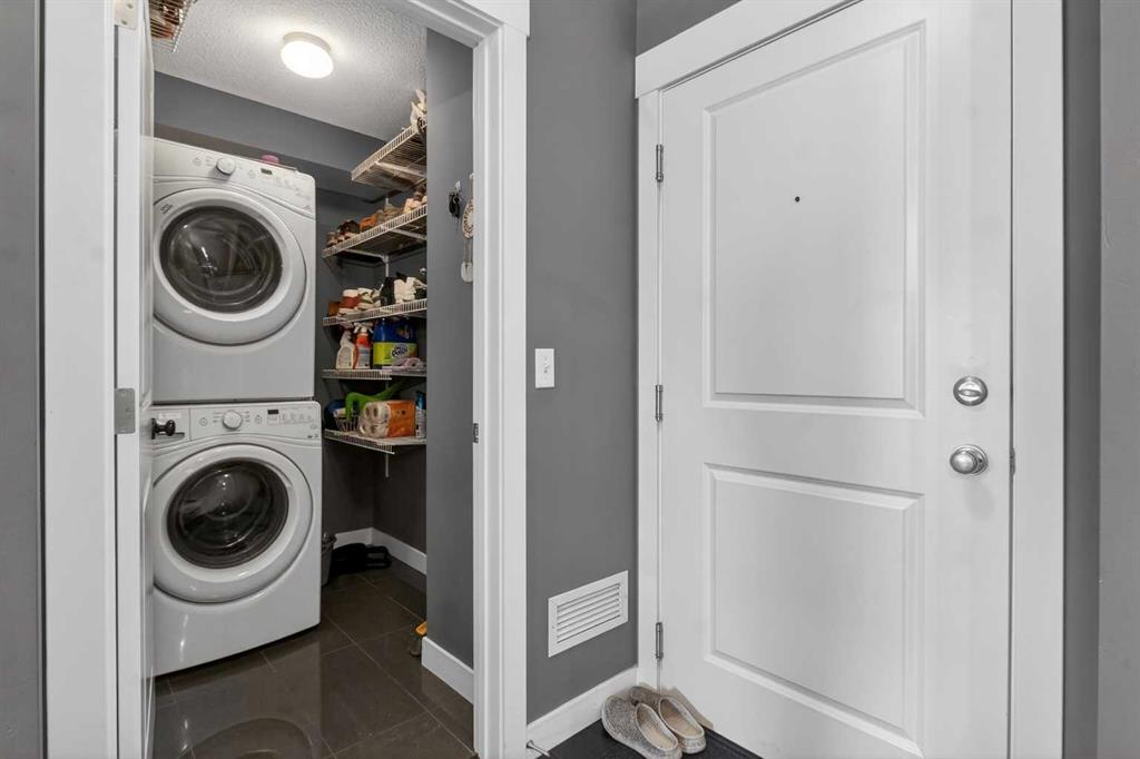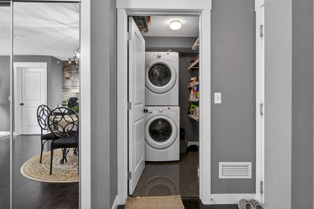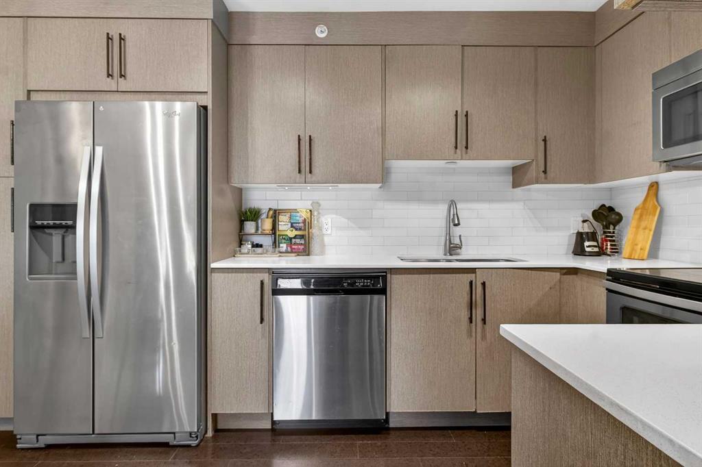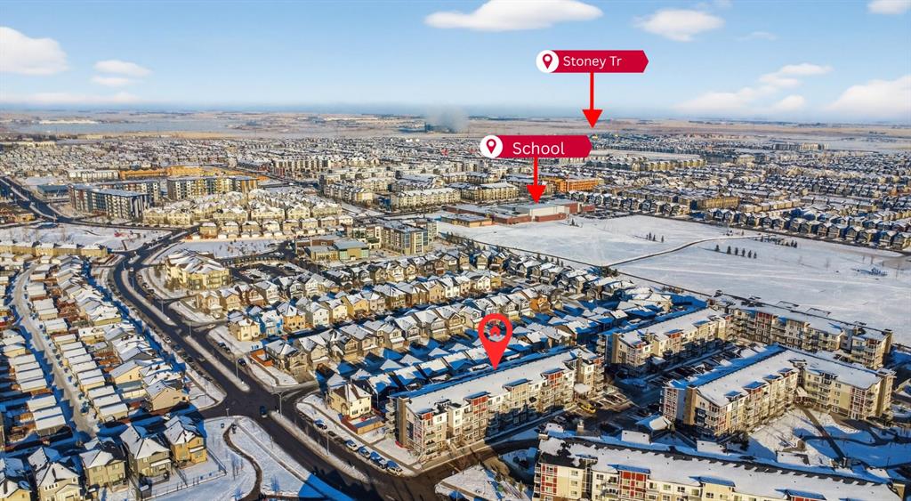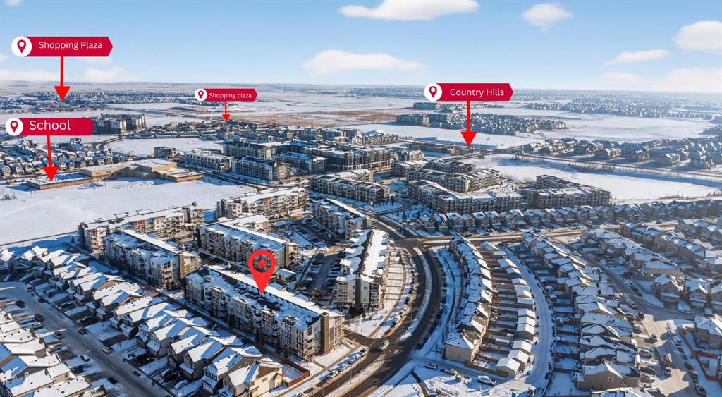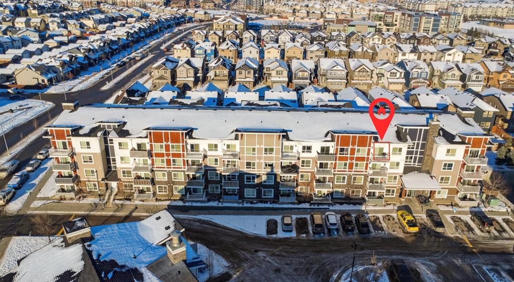 Welcome to this incredibly bright and spacious 818-sq-ft unit in a family-friendly community. This thoughtfully curated 2 – bedroom, 2–bathroom top–floor unit in Skyview Ranch blends style and substance effortlessly, with every room crafted for comfort, natural light, and connection. Morning sunshine streams through the patio doors, bathing the open-concept living area in a gentle glow. From the living room, sliding glass doors usher you onto a generous balcony overlooking the mountains, where you can savor outdoor meals all summer long. The spacious kitchen, framed with full-height cabinetry and refined finishes, feels both grounded and welcoming, including quartz countertops, stainless steel appliances, in-suite laundry, cork flooring, and carpet. A modern light fixture anchors the dining area, perfectly centering your dining table. A built-in desk area is nestled between the dining and living rooms, offering a convenient place for remote work or school assignments. Both bedrooms are ample and finished with luxurious carpeting. The primary bedroom boasts a walk-through closet that opens into a private 4-piece ensuite with a tub/shower combo. The second large bedroom on the far side of the unit is served by an adjacent 4-piece bath. The in-suite laundry is a welcome convenience and provides sufficient storage. This condo also includes the convenience of a titled underground parking stall, along with an additional storage locker located in front of the stall, perfect for seasonal items. As a resident of Skyview Ranch, you’ll enjoy an unbeatable lifestyle with access to schools, shopping, restaurants, parks, and excellent transportation routes, making commuting easy. With quick access to Stoney Trail, Deerfoot Trail, CrossIron Mills, Amazon shipping depot, and The Airport. You’ll be well-connected to go anywhere you want to explore. Schedule your showing today!