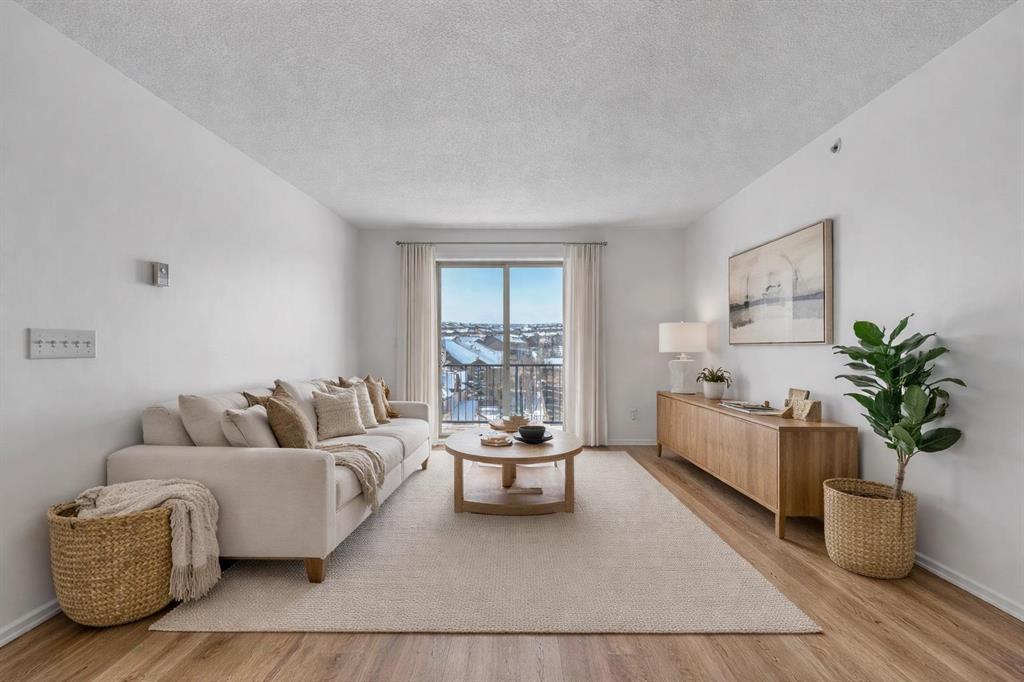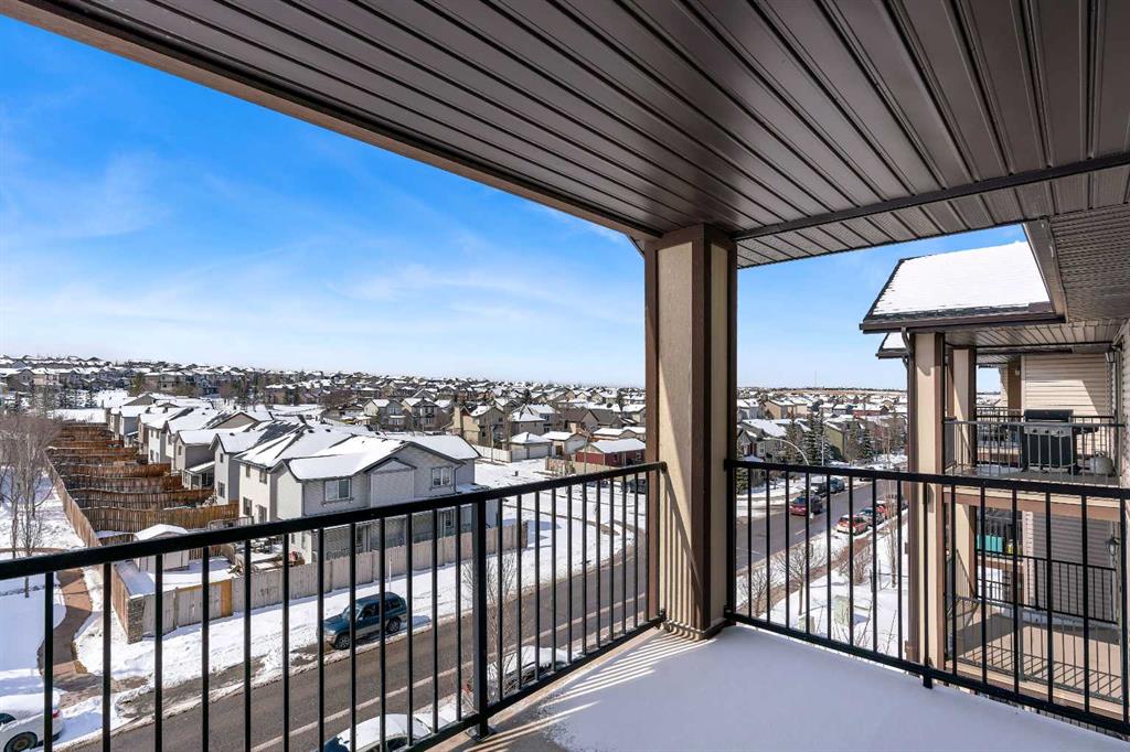 Perched on the top floor in the ever-popular community of Panorama Hills, this beautifully updated condo offers an inviting blend of comfort, style, and everyday convenience. Spanning approximately 850 sq ft, the thoughtfully designed layout strikes a perfect balance between open-concept living and well-separated bedrooms, creating a space that feels both connected and private. With LVP flooring and neutral paint tones, the home presents a clean, modern feel from the moment you step inside. The kitchen is both practical and polished, featuring generous counter space, a raised breakfast bar ideal for casual dining or hosting, and a full stainless steel appliance package. The west-facing orientation fills the home with natural light throughout the afternoon and evening, offering beautiful sunset views from both the living area and the oversized covered balcony. Whether you’re unwinding after a long day or hosting friends for a summer BBQ, this outdoor space is a true extension of the home. The primary bedroom is a comfortable retreat, complete with a walk-through closet and a private 4-piece ensuite. A second bedroom, also west-facing, is bright and versatile—ideal for guests, a home office, or additional living space. In-suite laundry with extra pantry and storage options adds to the home’s everyday functionality.