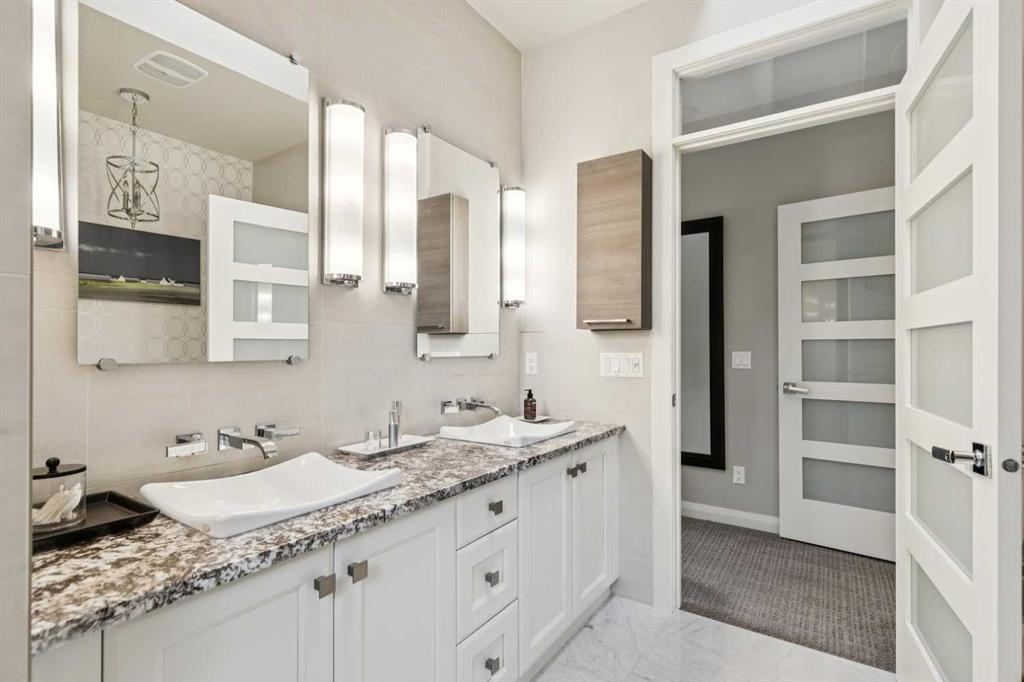 OPEN HOUSE SATURDAY FEB 28 2:00-4:00PM | Immaculate Altadore residence offering nearly 3,000 sqft of refined living space. This home presents as though it were just completed. Meticulously maintained and thoughtfully upgraded, every finish feels fresh, intentional, and elevated. The main level is designed for both entertaining and everyday function. A front living room anchored by an elegant fireplace flows seamlessly into the chef’s kitchen featuring a large island, granite counters, marble tile backsplash, built-in wine refrigeration, gas cooktop, and high-end appliances. The dining area comfortably accommodates a full-sized table and overlooks the sunny west-facing backyard. A well-designed mudroom with custom millwork keeps daily life organized and discreet. Upstairs, three bedrooms include two connected by a Jack and Jill ensuite, along with a spacious primary retreat complete with custom walk-in closet, contemporary fireplace, and a luxurious five-piece ensuite with in-floor heat, dual vanities, soaker tub, and walk-in shower. Upper-level laundry adds practical convenience.