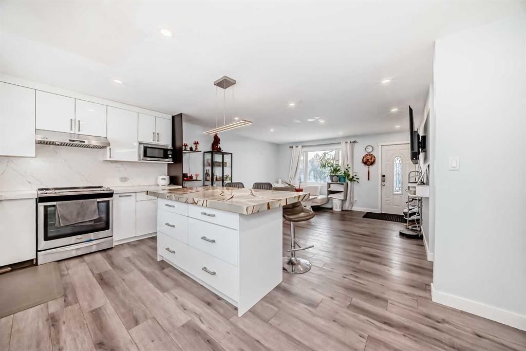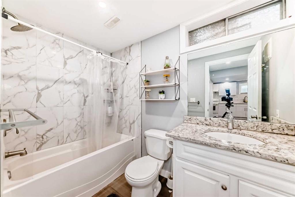 Welcome to this beautifully updated open-floor-plan bungalow featuring a bright open-concept living room, 3 bedrooms on the main level, and a renovated 4-piece bathroom with quartz countertop. Newer windows, Hotwater tank, high efficiency furnace. The home offers laminate flooring throughout, with tile flooring in the basement bathrooms & basement entrance for easy clean, modern finish. The stylish kitchen includes stainless steel appliances and quartz countertops, with all bathrooms fully renovated and upgraded with quartz surfaces.