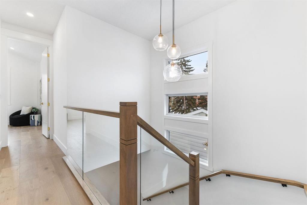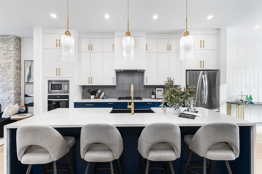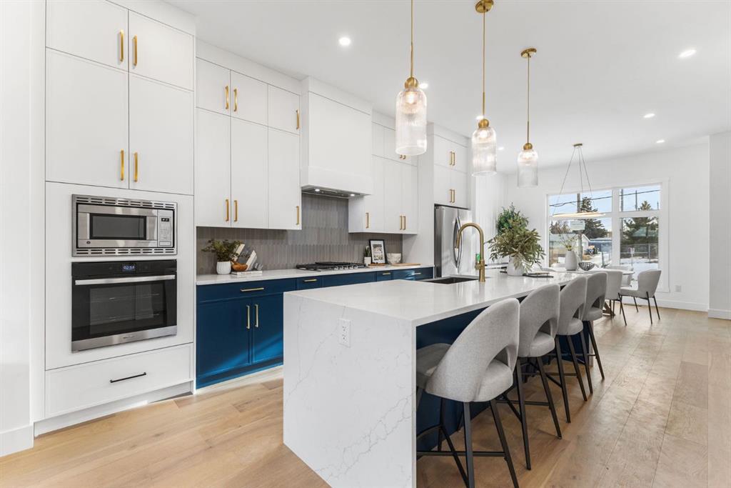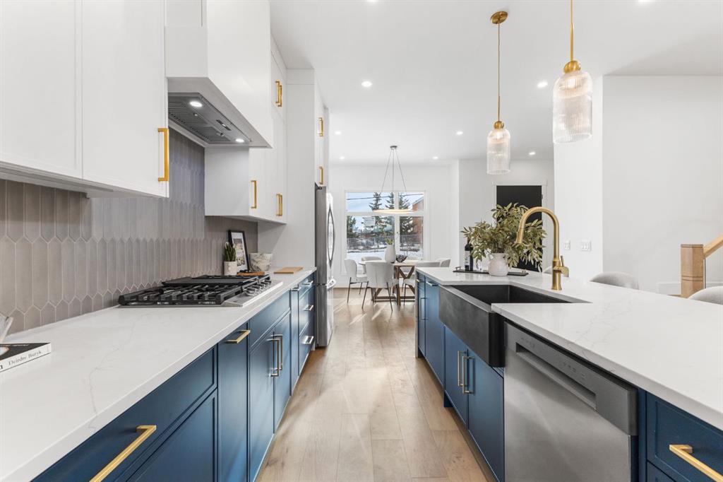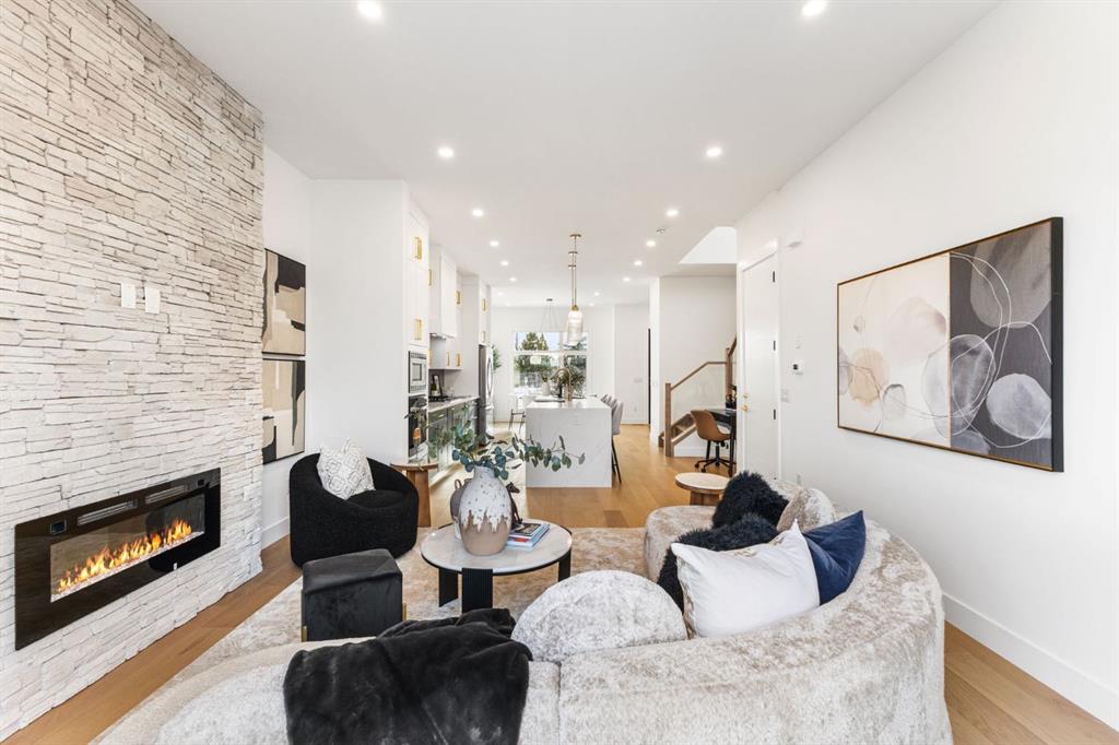 OPEN HOUSE SATURDAY, JANUARY 17TH FROM 1-3 PM & SUNDAY, JANUARY 18TH FROM 1-4 PM. Welcome to this brand-new, 3 bedroom residence perfectly situated in the mature community of Rosscarrock. Designed for modern living and crafted with exceptional attention to detail, this contemporary two-storey home offers over 1900 sq ft of beautifully developed space, plus a self-contained legal one-bedroom basement suite—ideal for guests, or as a potential mortgage helper. The main level showcases an open-concept design enhanced by wide-plank hardwood floors, high ceilings, and expansive windows that flood the space with natural light. The inviting living room features a striking floor to ceiling fireplace and built-in shelving, creating a warm focal point for gatherings. The adjacent dining area easily accommodates family meals or formal entertaining. At the heart of the home, the chef-inspired kitchen impresses with full-height cabinetry, quartz countertops, an oversized island with breakfast bar and excellent appliance package. Thoughtful details such as recessed lighting, designer chandelier, a functional mudroom with custom built-ins and 2 piece powder room elevate the space. Upstairs, the vaulted-ceiling primary suite is a private retreat, complete with a spacious walk-in closet fitted with custom organizers and a luxurious 5-piece ensuite featuring double sinks, a quartz-topped vanity, freestanding soaking tub, and separate glass shower. Two additional bedrooms, a 4-piece bath, and a convenient laundry room with sink complete this level. The fully developed lower level has been designed as a private, self-contained legal one-bedroom suite, complete with its own kitchen, living area, full bathroom, and laundry facilities. Large windows, recessed lighting, and quality finishes ensure the suite feels bright and inviting—ideal for extended family, guests, or rental use. Outside, enjoy a private, landscaped yard with a rear deck, fencing, and a double detached garage. The home’s exterior blends timeless brick and composite siding with modern lines and a welcoming south-facing front exposure. Situated on a quiet street within walking distance to parks, playgrounds & schools and close to Shaganappi Point Golf Course, shopping, scenic Edworthy Park and public transit, this property offers the perfect balance of style, flexibility, and convenience. Newly built in 2025, this outstanding Rosscarrock residence delivers premium craftsmanship, functional design, and exceptional versatility—ideal for today’s discerning buyer seeking luxury living with the added benefit of a legal self-contained suite.