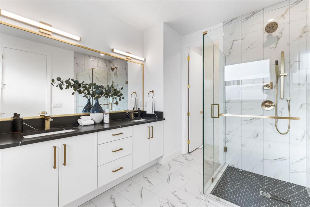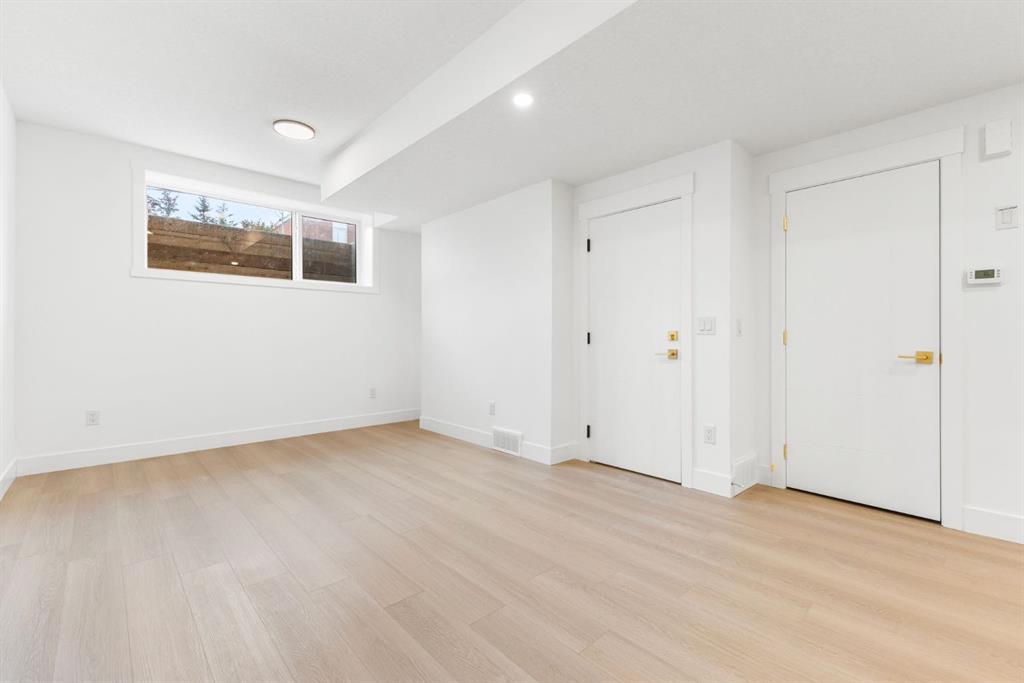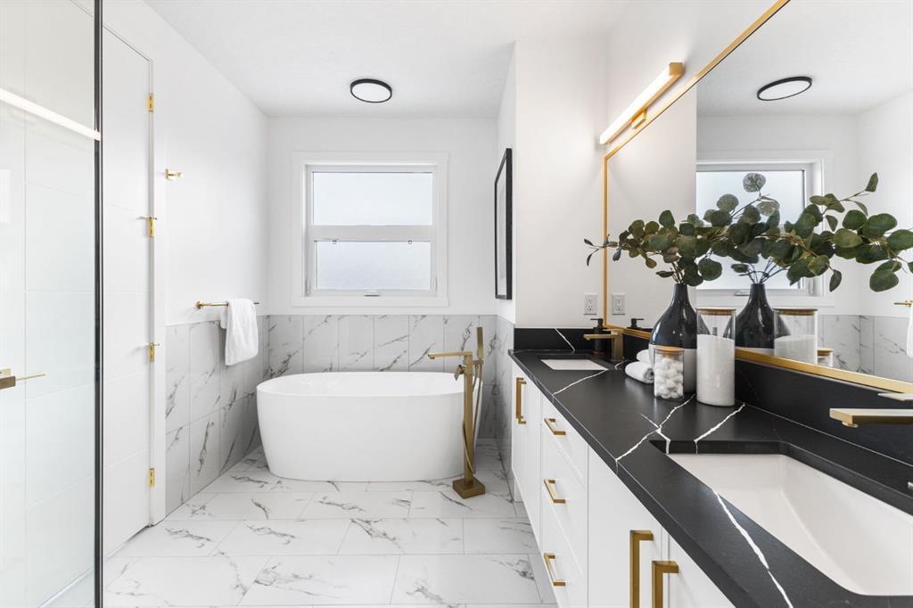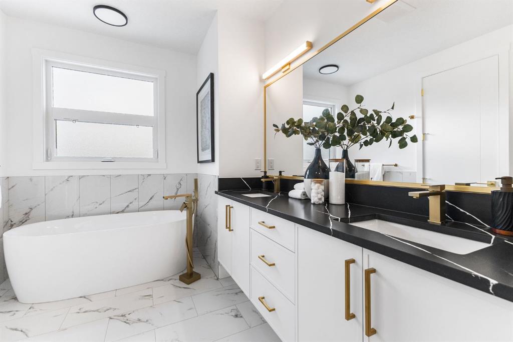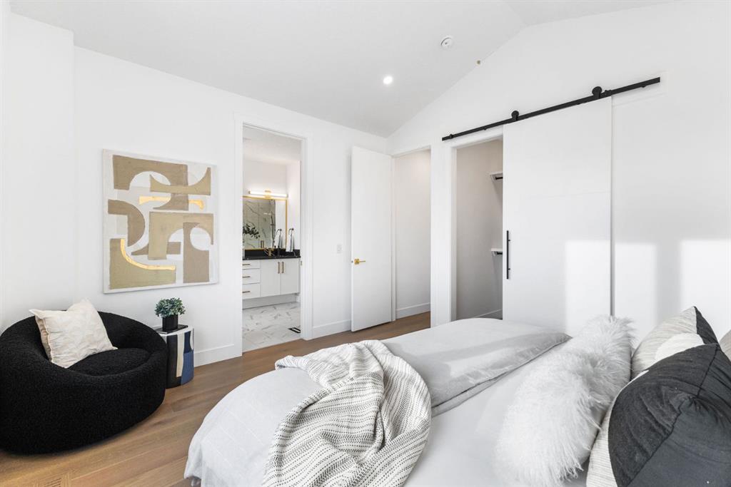 OPEN HOUSE SATURDAY, JANUARY 17TH FROM 1-3 PM & SUNDAY, JANUARY 18TH FROM 1-4 PM. Welcome to this brand-new, 3 bedroom residence perfectly situated in the mature community of Rosscarrock. Designed for modern living and crafted with exceptional attention to detail, this contemporary two-storey home offers over 1900 sq ft of beautifully developed space, plus a self-contained legal one-bedroom basement suite—ideal for guests, or as a potential mortgage helper. The main level showcases an open-concept design enhanced by wide-plank hardwood floors, high ceilings, and expansive windows that flood the space with natural light. The inviting living room features a striking floor to ceiling fireplace and built-in shelving, creating a warm focal point for gatherings. The adjacent dining area easily accommodates family meals or formal entertaining. At the heart of the home, the chef-inspired kitchen impresses with full-height cabinetry, quartz countertops, an oversized island with breakfast bar and excellent appliance package. Thoughtful details such as recessed lighting, designer chandelier, a functional mudroom with custom built-ins and 2 piece powder room elevate the space. Upstairs, the vaulted-ceiling primary suite is a private retreat, complete with a spacious walk-in closet fitted with custom organizers and a luxurious 5-piece ensuite featuring double sinks, a quartz-topped vanity, freestanding soaking tub, and separate glass shower. Two additional bedrooms, a 4-piece bath, and a convenient laundry room with sink complete this level. The fully developed lower level has been designed as a private, self-contained legal one-bedroom suite, complete with its own kitchen, living area, full bathroom, and laundry facilities. Large windows, recessed lighting, and quality finishes ensure the suite feels bright and inviting—ideal for extended family, guests, or rental use. Outside, enjoy a private, landscaped yard with a rear deck, fencing, and a double detached garage. The home’s exterior blends timeless brick and composite siding with modern lines and a welcoming south-facing front exposure. Situated on a quiet street within walking distance to parks, playgrounds & schools and close to Shaganappi Point Golf Course, shopping, scenic Edworthy Park and public transit, this property offers the perfect balance of style, flexibility, and convenience. Newly built in 2025, this outstanding Rosscarrock residence delivers premium craftsmanship, functional design, and exceptional versatility—ideal for today’s discerning buyer seeking luxury living with the added benefit of a legal self-contained suite.