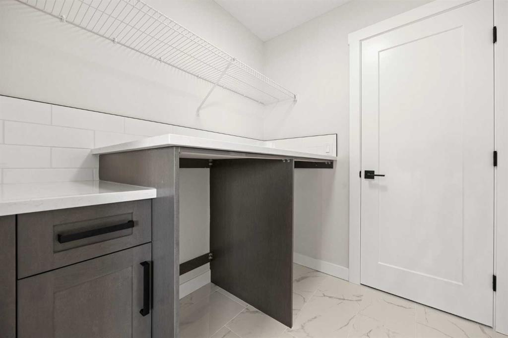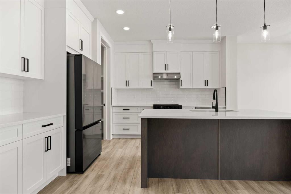 From the moment you step inside, you’re greeted by a luxury open-to-below entrance featuring a custom shiplap coat hook and built-in bench, making a stylish and practical first impression. The main floor features 9′ ceilings with 8′ doors throughout, a full bedroom with an adjoining full bathroom, and a walkthrough mudroom and pantry that connects seamlessly to the open living space. The heart of the home is the kitchen, with painted cabinets to the ceiling, quartz countertops, a large island with breakfast bar seating, and stainless steel appliances. Oversized triple-pane windows fill the dining and living rooms with natural light, while the open layout makes this the perfect home for family gatherings or entertaining.