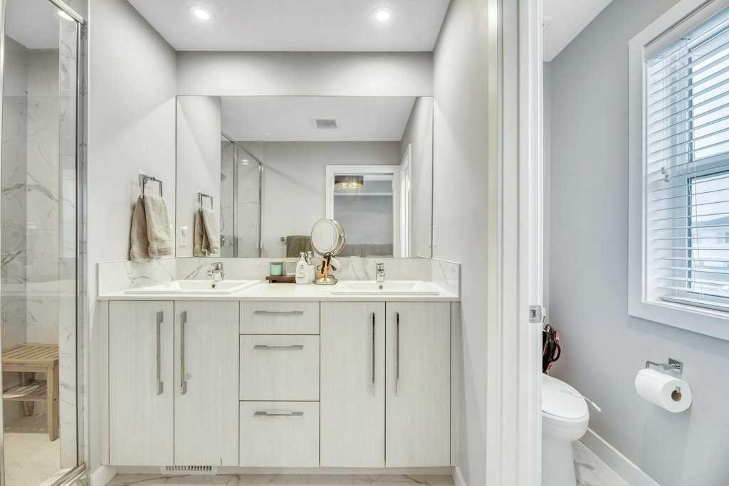 The gleaming kitchen is sure to impress with quartz countertops, a spacious island, gas stove, and sleek cabinetry, all seamlessly connected to the dining area with direct access to the private deck — perfect for summer evenings and outdoor dining. Upstairs, you’ll find three well-appointed bedrooms, including the spacious primary suite complete with a walk-in closet and a luxurious 4-piece ensuite featuring a double vanity. The unfinished lower level with 9-foot ceilings offers endless potential for future development to suit your needs. Step outside to enjoy the fully fenced yard with low-maintenance vinyl fencing and a pergola already in place, creating a perfect outdoor retreat. The parking pad is already completed and ready for your future double garage. Additional highlights include air conditioning and fresh paint throughout, making this home truly turnkey.